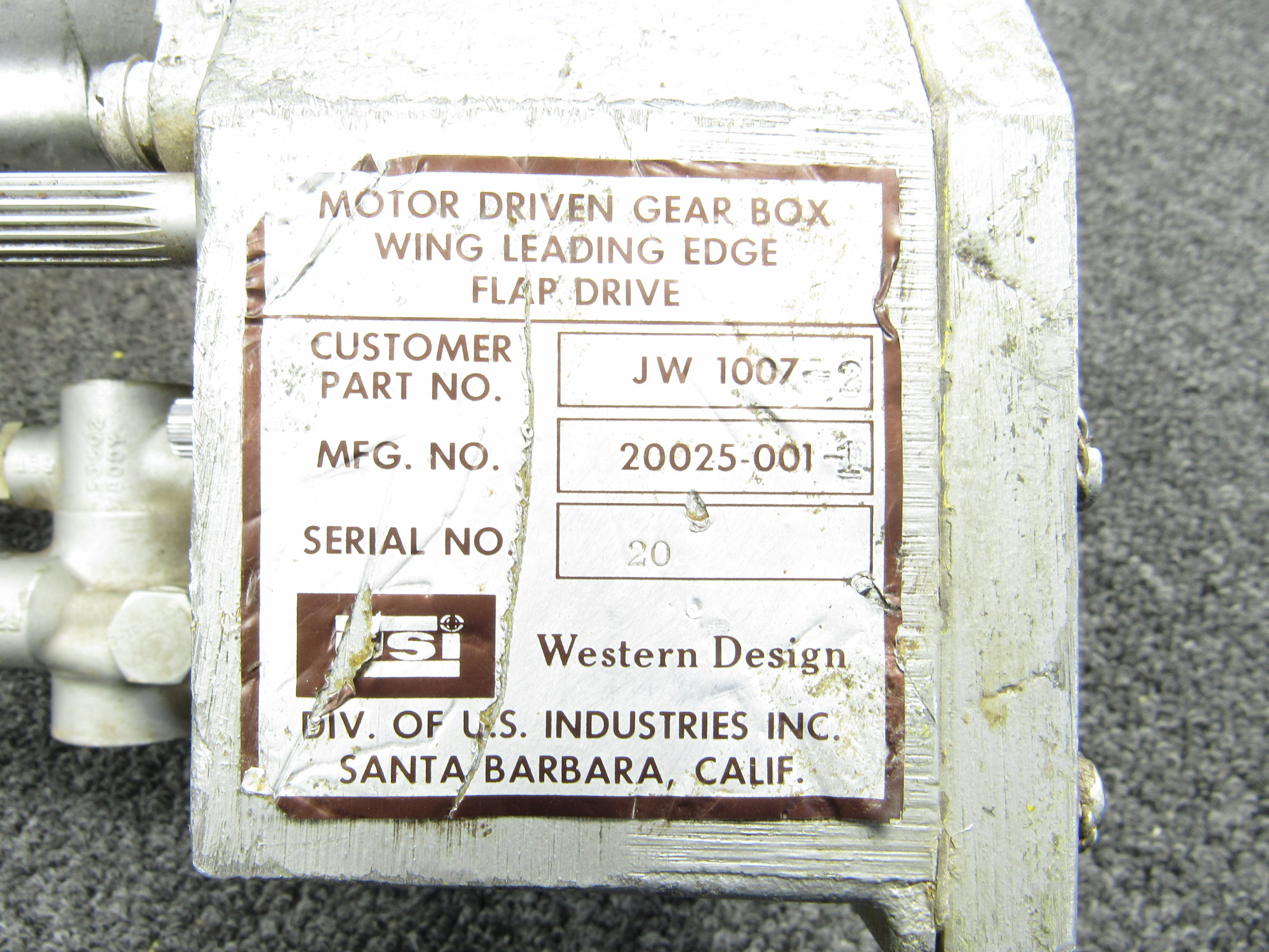 - Motor Driven Gearbox Part Number: 20025-001-1