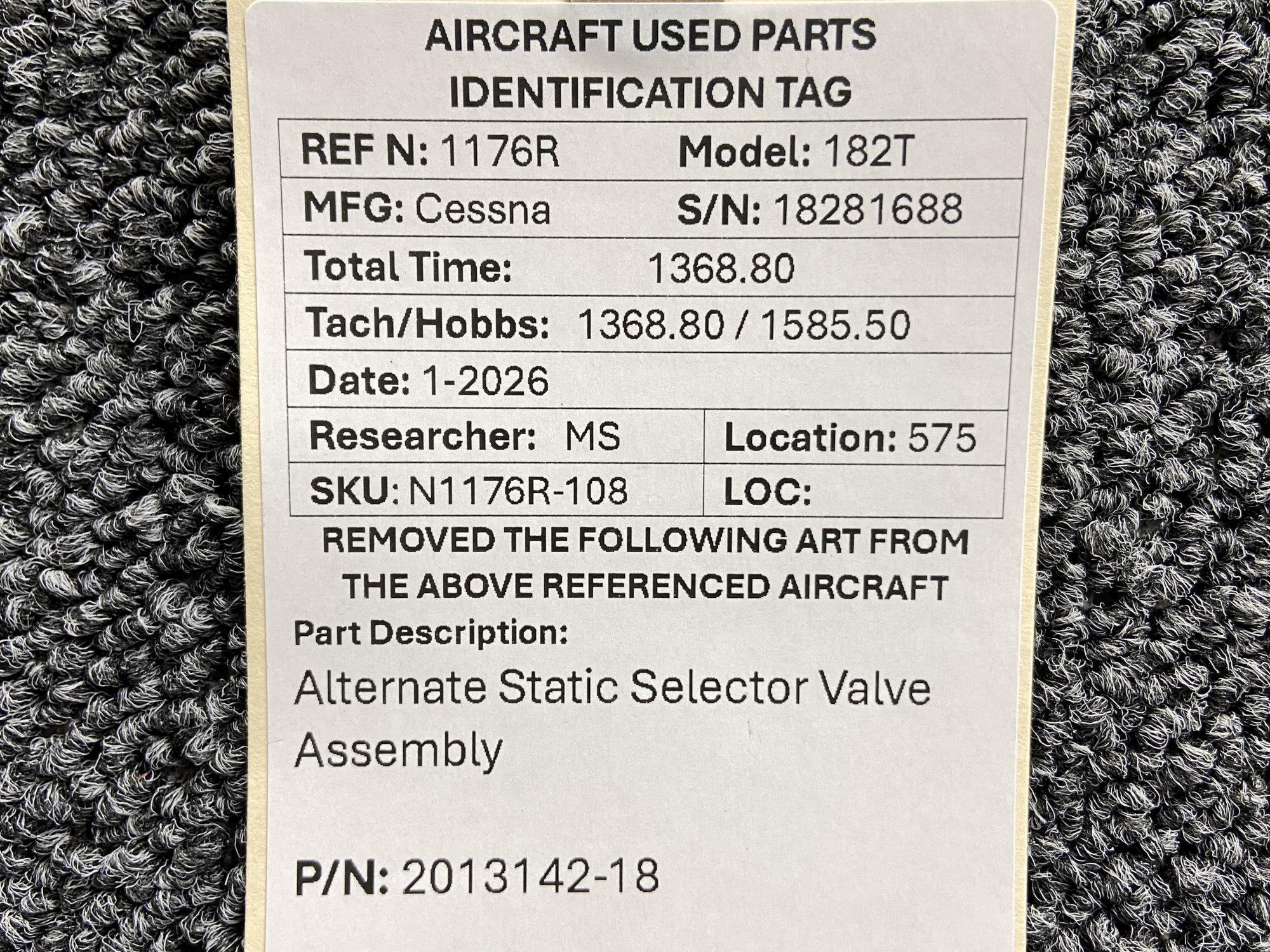 Unless specifically noted, most of our used airplane parts are sold in the condition they were removed, which means you should expect the usual signs of wear and tear.