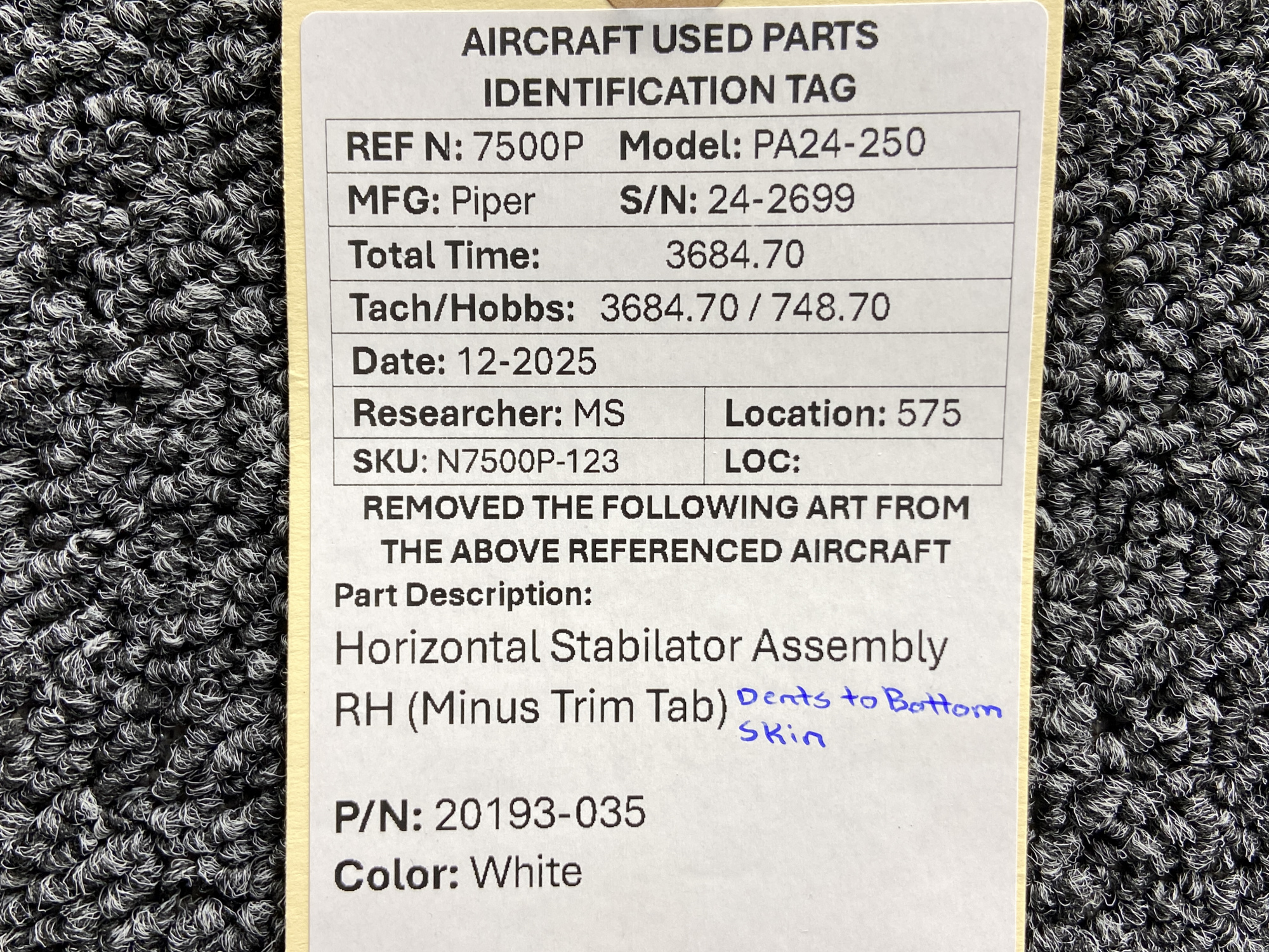 Unless specifically noted, most of our used airplane parts are sold in the condition they were removed, which means you should expect the usual signs of wear and tear.