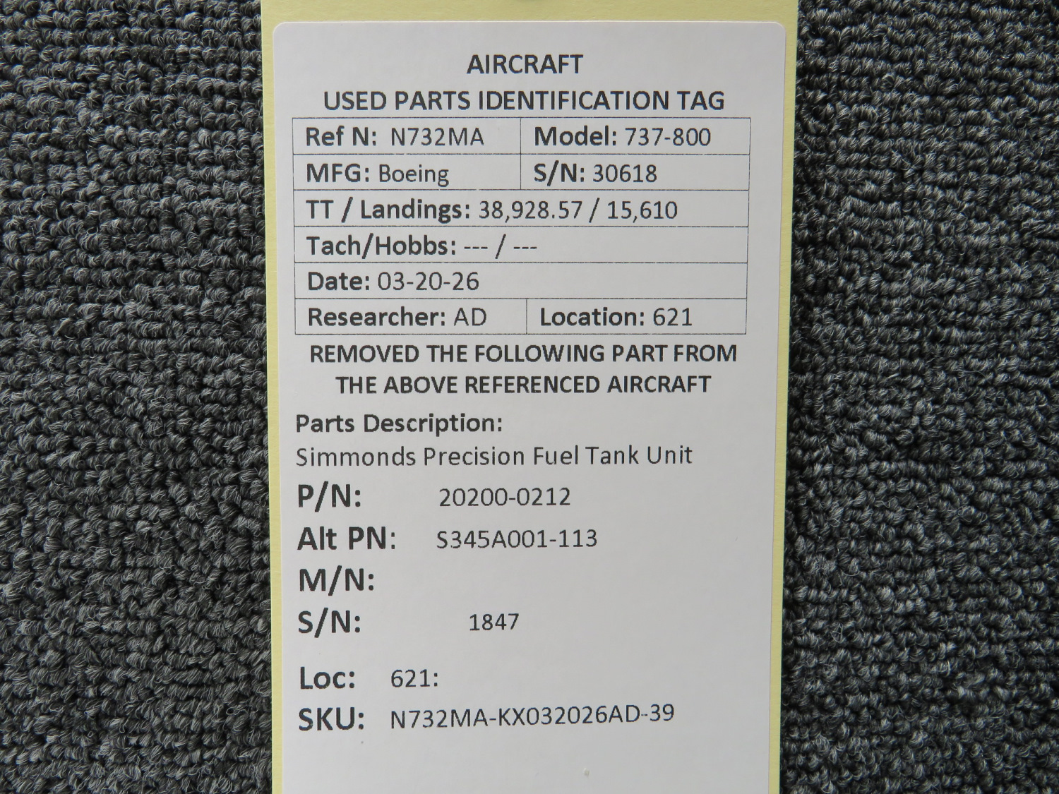Every part is carefully inspected throughout our process and several times before it goes online. Most items are sold as-removed, just as they came off the aircraft. These parts are not functionally tested. What we do provide is clear photos, full traceability when available, pricing that reflects the as-removed condition, and a no-nonsense 90-day return window.