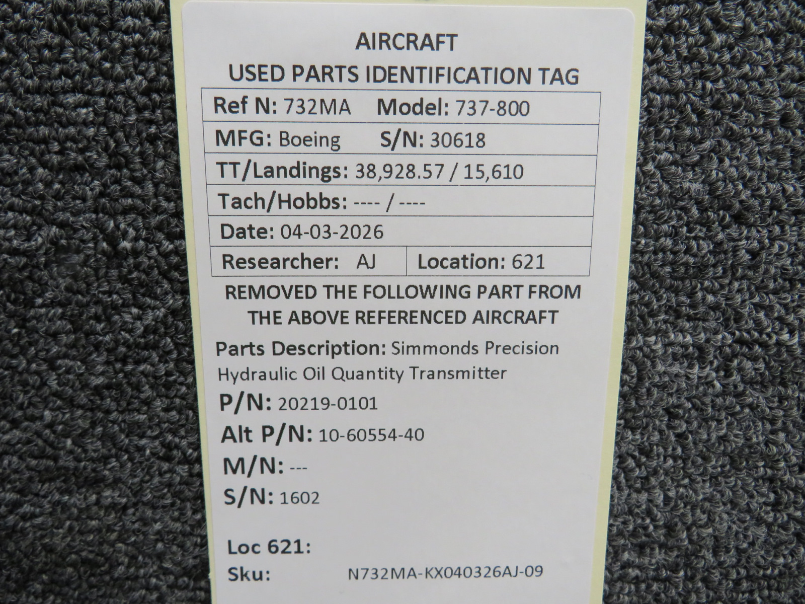 Every part is carefully inspected throughout our process and several times before it goes online. Most items are sold as-removed, just as they came off the aircraft. These parts are not functionally tested. What we do provide is clear photos, full traceability when available, pricing that reflects the as-removed condition, and a no-nonsense 90-day return window.