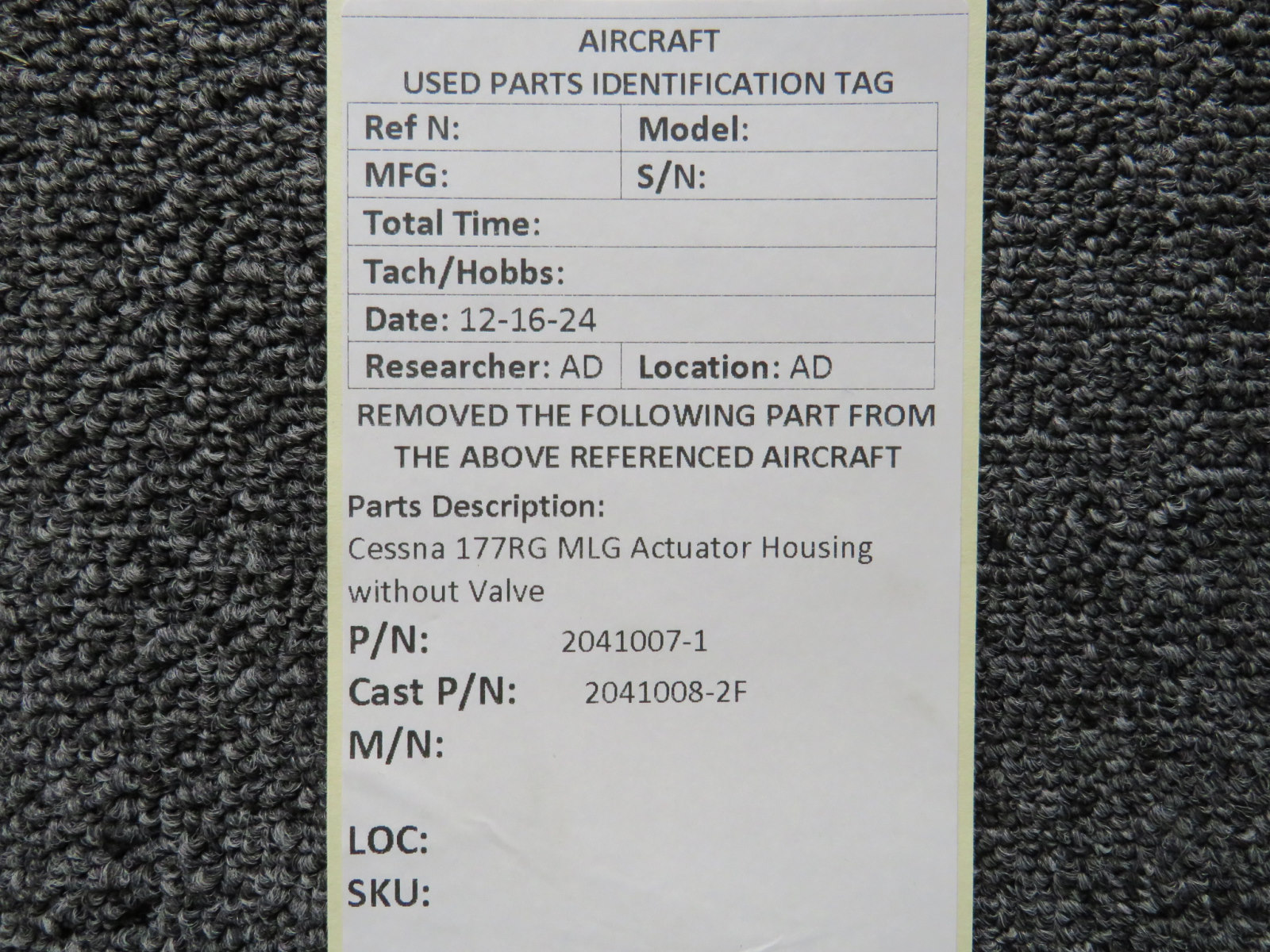 Attention International Buyers: We routinely export aircraft parts to destinations around the world. All import duties, taxes, and any other charges related to importing parts to your country are not included in the price of the item or shipping charges, these are 100% the responsibility of the buyer. Please check with your country's customs office to help determine what these additional costs will be prior to purchasing. We do not mark merchandise value below purchase value nor mark items as "gifts" as both U.S. and international law strictly prohibits this. We do not ship to forwarding shipping stations. A business or residential address is required for delivery.