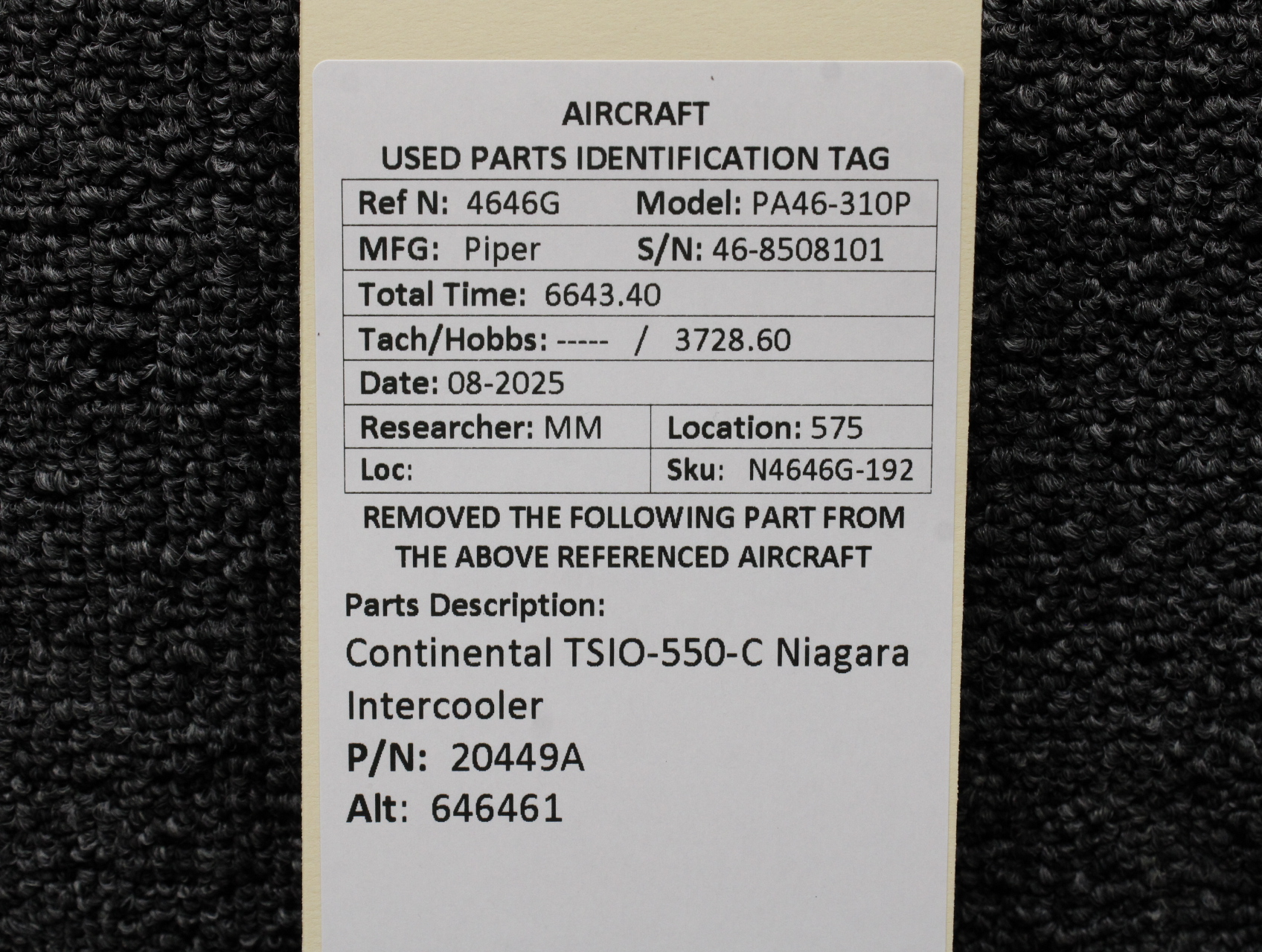Unless specifically noted, most of our used airplane parts are sold in the condition they were removed, which means you should expect the usual signs of wear and tear.