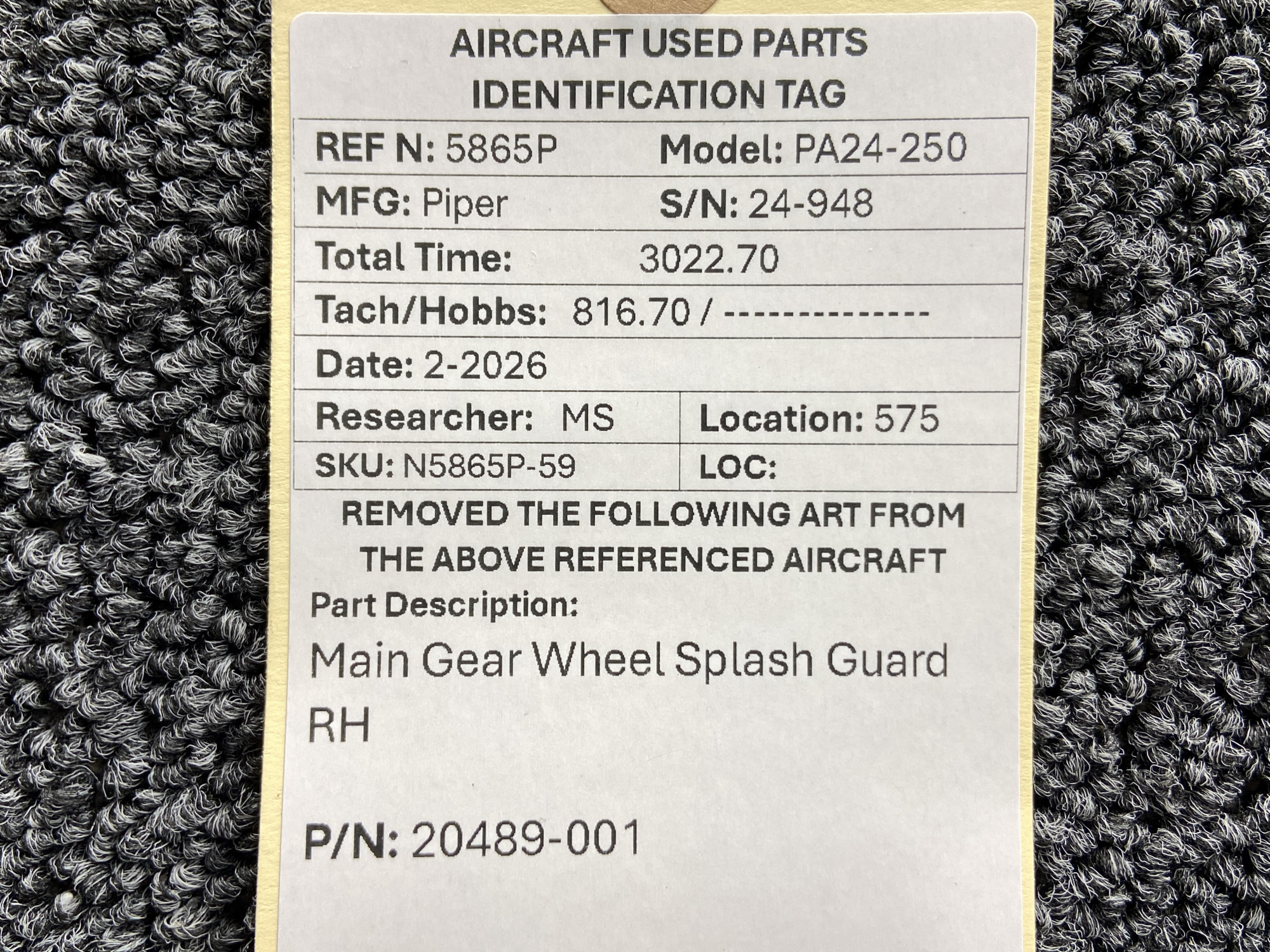 Unless specifically noted, most of our used airplane parts are sold in the condition they were removed, which means you should expect the usual signs of wear and tear.