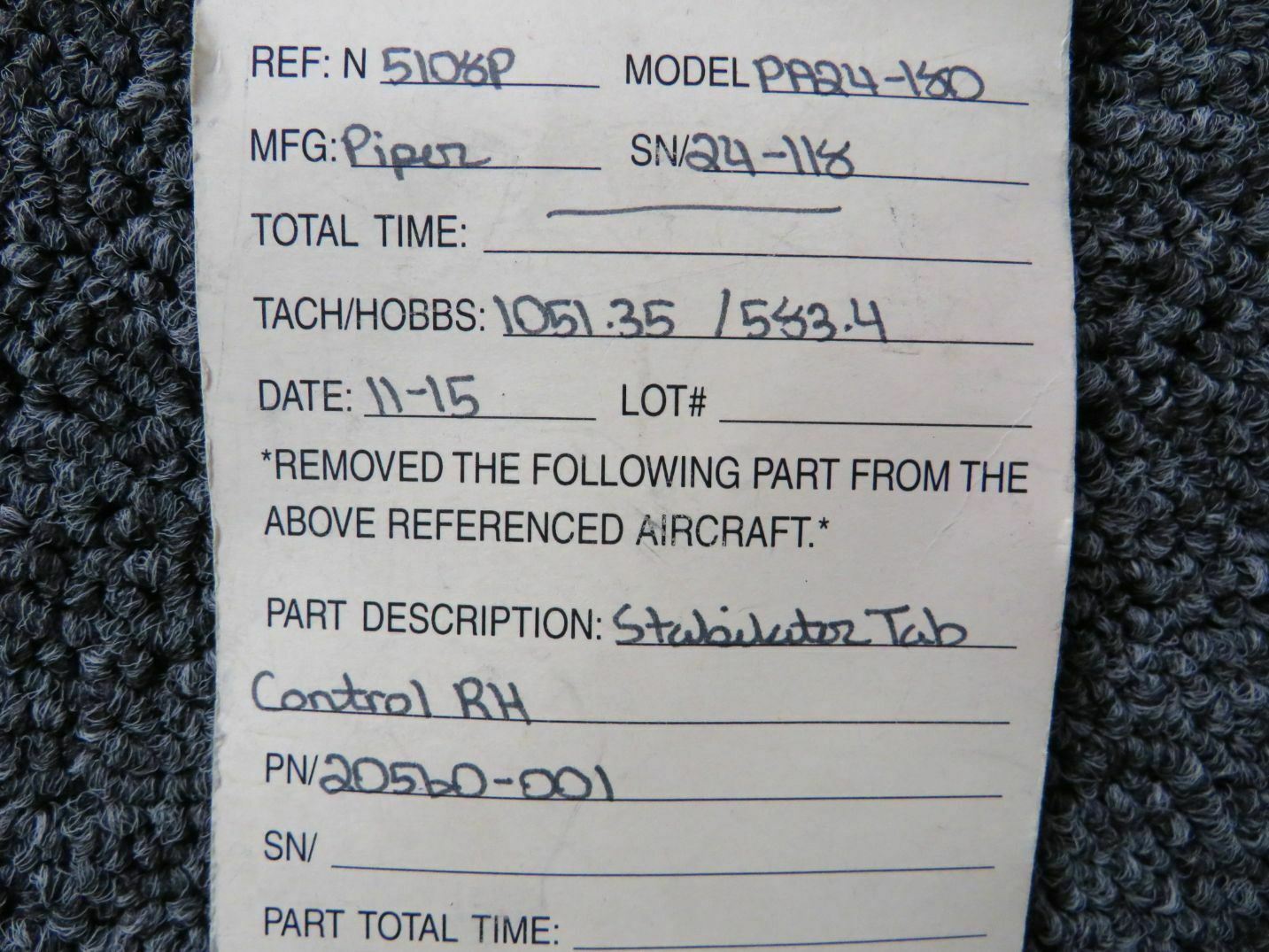 Unless specifically noted, most of our used airplane parts are sold in the condition they were removed, which means you should expect the usual signs of wear and tear.