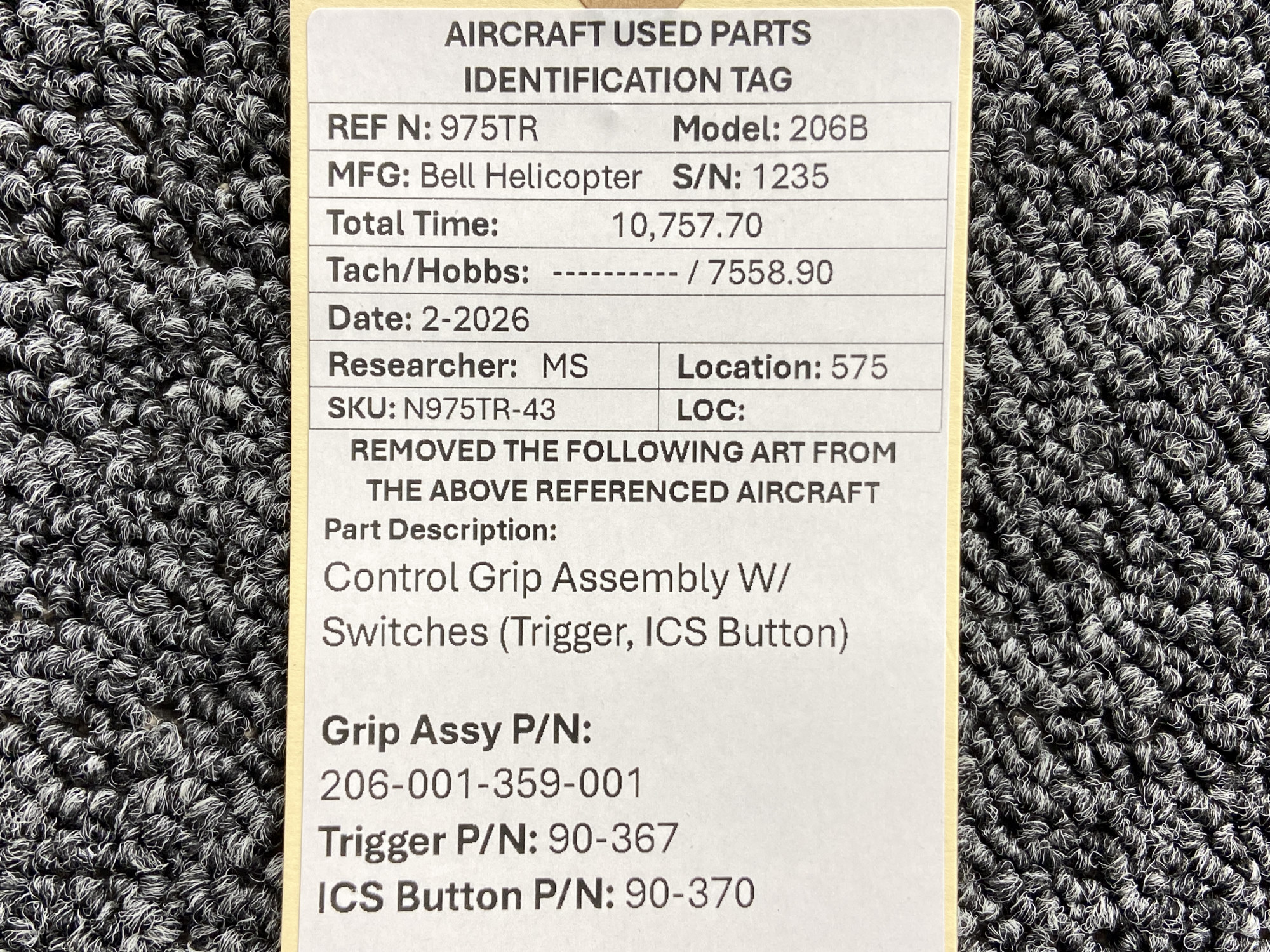 Every part is carefully inspected throughout our process and several times before it goes online. Most items are sold as-removed, just as they came off the aircraft. These parts are not functionally tested. What we do provide is clear photos, full traceability when available, pricing that reflects the as-removed condition, and a no-nonsense 90-day return window.