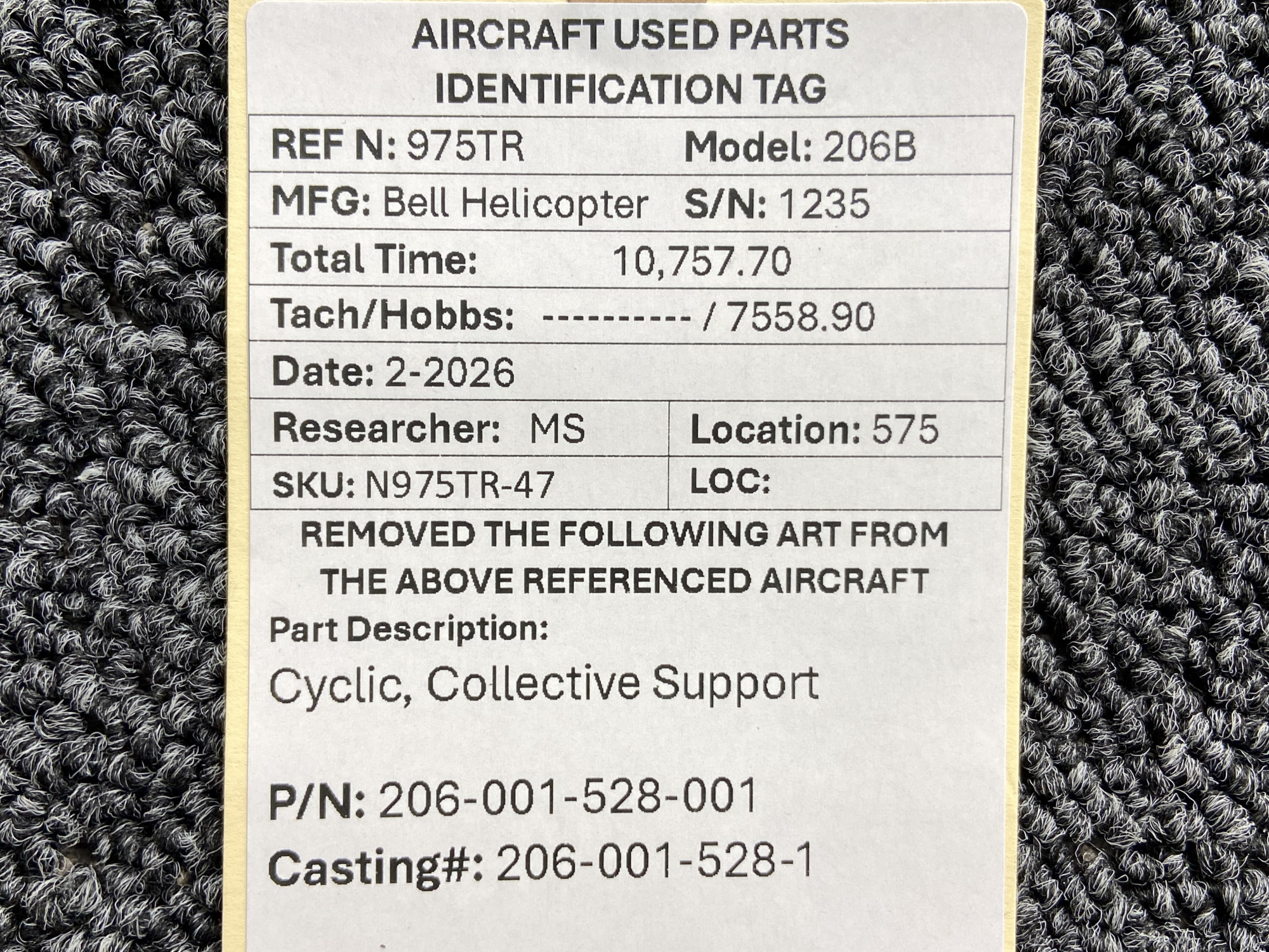 Every part is carefully inspected throughout our process and several times before it goes online. Most items are sold as-removed, just as they came off the aircraft. These parts are not functionally tested. What we do provide is clear photos, full traceability when available, pricing that reflects the as-removed condition, and a no-nonsense 90-day return window.