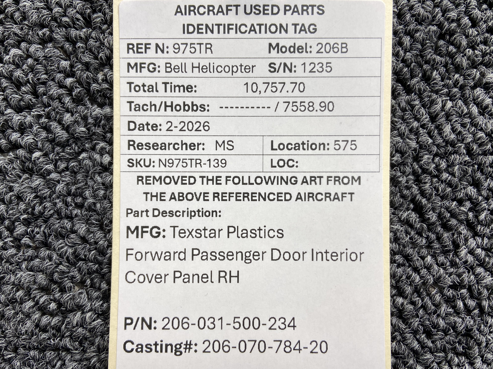 Every part is carefully inspected throughout our process and several times before it goes online. Most items are sold as-removed, just as they came off the aircraft. These parts are not functionally tested. What we do provide is clear photos, full traceability when available, pricing that reflects the as-removed condition, and a no-nonsense 90-day return window.