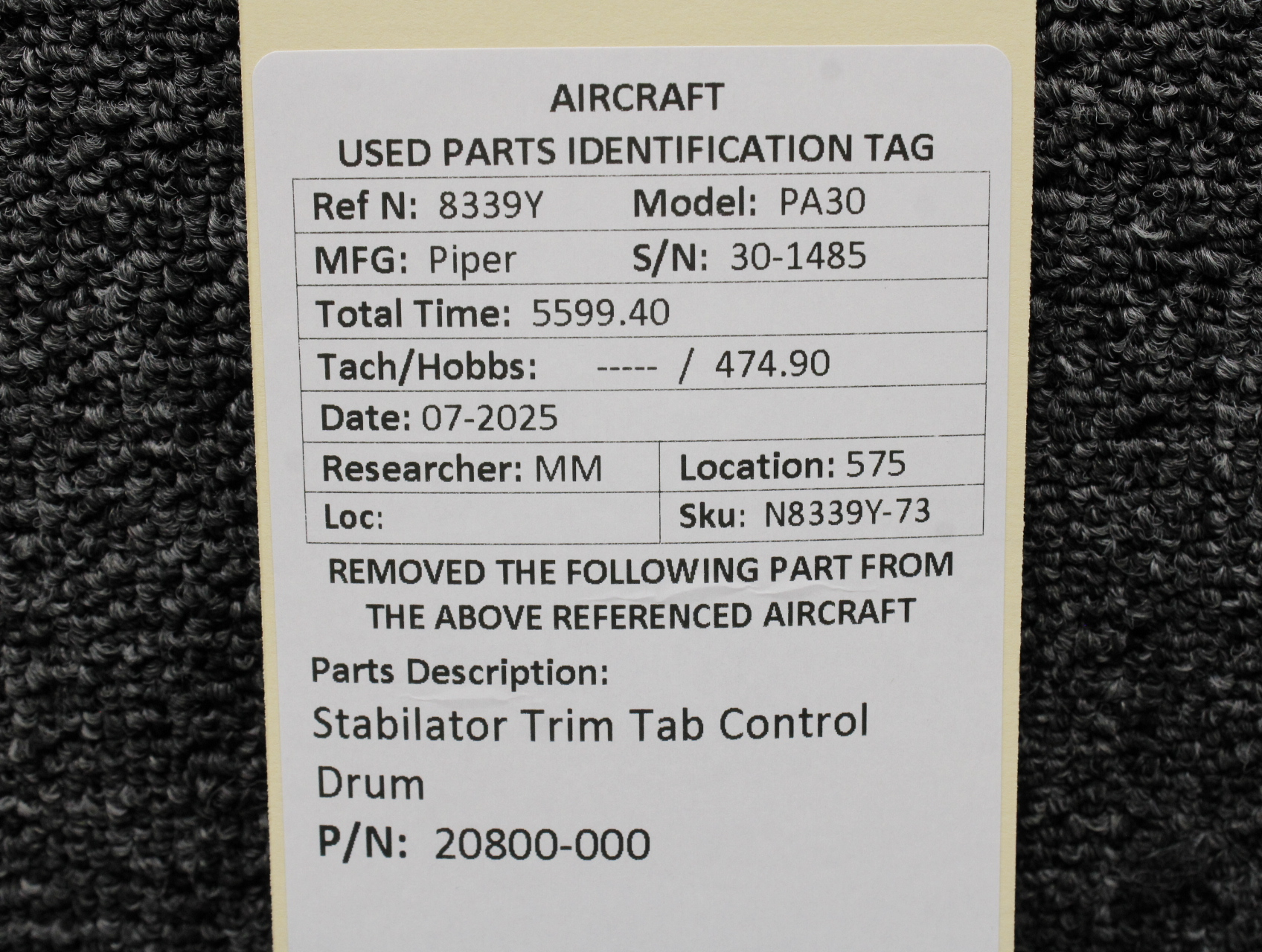 Unless specifically noted, most of our used airplane parts are sold in the condition they were removed, which means you should expect the usual signs of wear and tear.