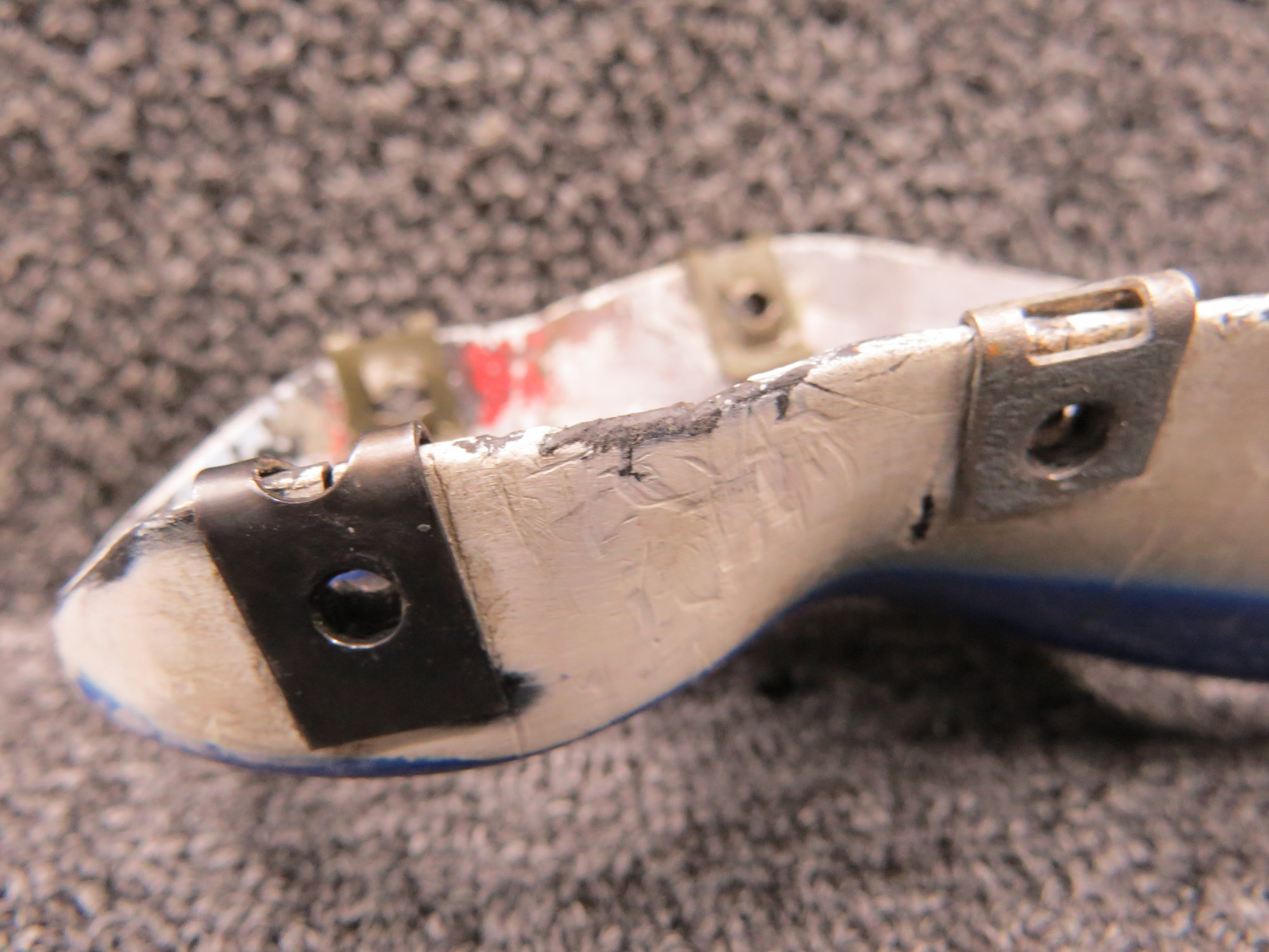 - Paint and edges are worn with some scratches and scuffs