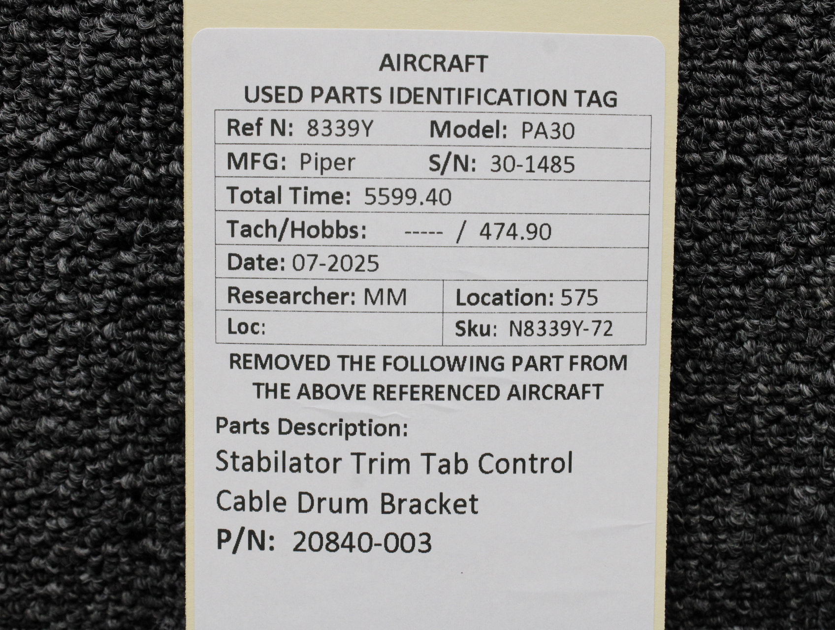 Unless specifically noted, most of our used airplane parts are sold in the condition they were removed, which means you should expect the usual signs of wear and tear.