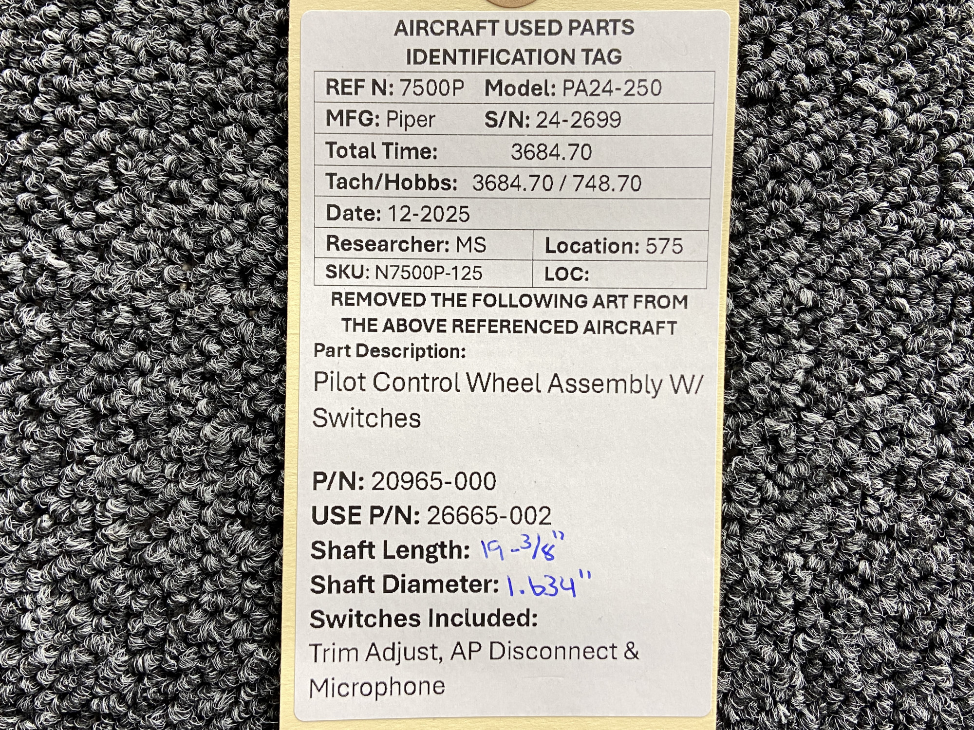 Unless specifically noted, most of our used airplane parts are sold in the condition they were removed, which means you should expect the usual signs of wear and tear.