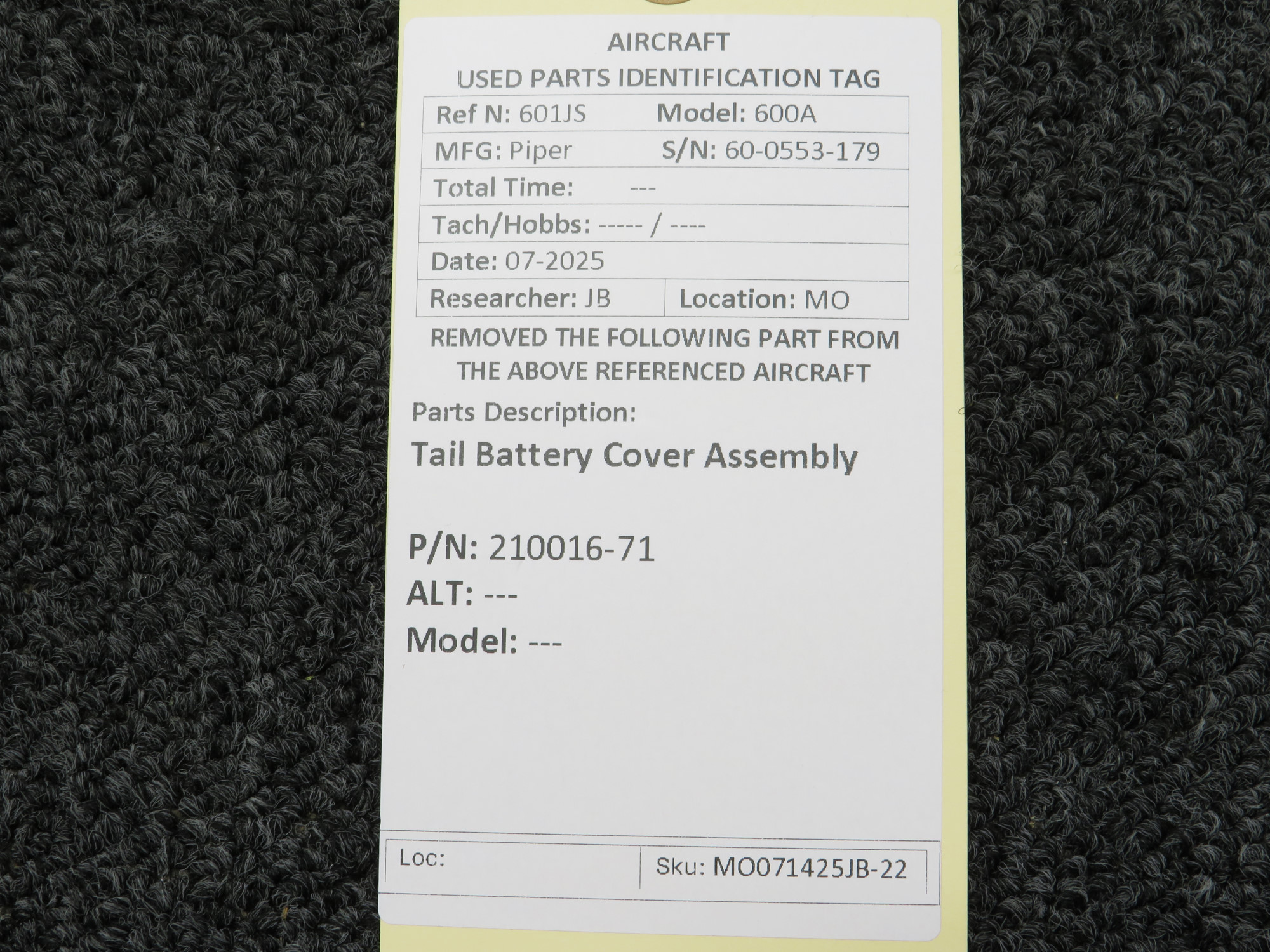 Unless specifically noted, most of our used airplane parts are sold in the condition they were removed, which means you should expect the usual signs of wear and tear.
