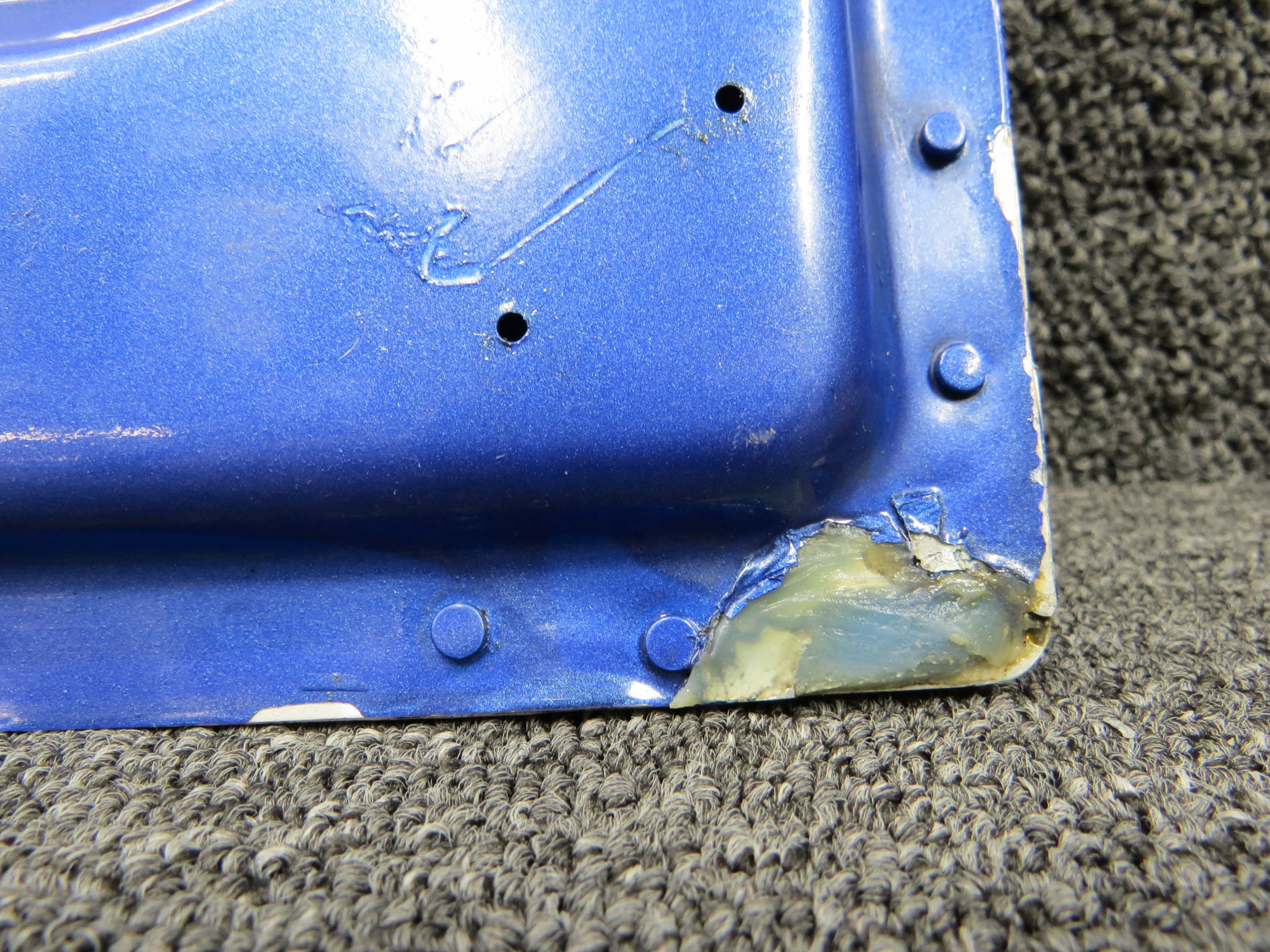 - Minor wear to hinge holes, worn paint in areas, and minor scrape and wear on left corner