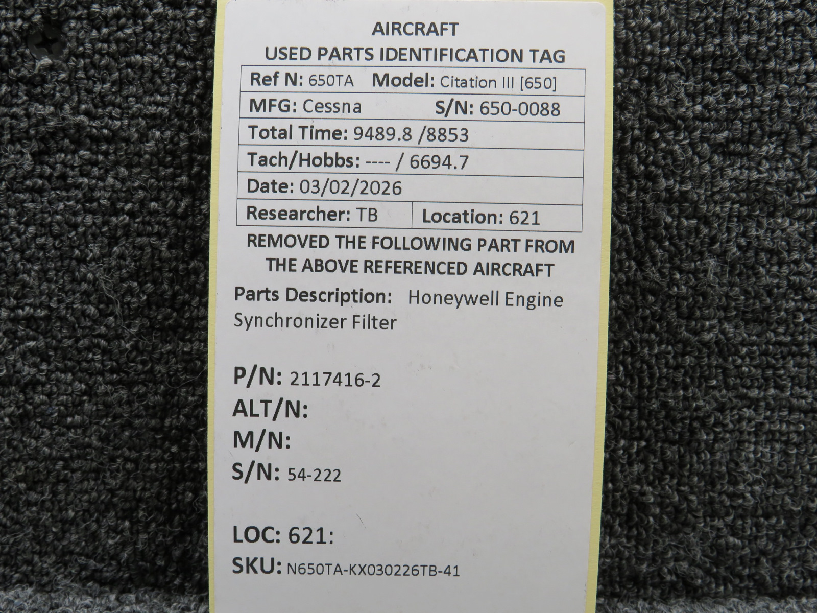 Every part is carefully inspected throughout our process and several times before it goes online. Most items are sold as-removed, just as they came off the aircraft. These parts are not functionally tested. What we do provide is clear photos, full traceability when available, pricing that reflects the as-removed condition, and a no-nonsense 90-day return window.
