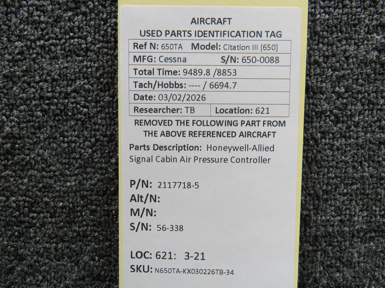 Every part is carefully inspected throughout our process and several times before it goes online. Most items are sold as-removed, just as they came off the aircraft. These parts are not functionally tested. What we do provide is clear photos, full traceability when available, pricing that reflects the as-removed condition, and a no-nonsense 90-day return window.