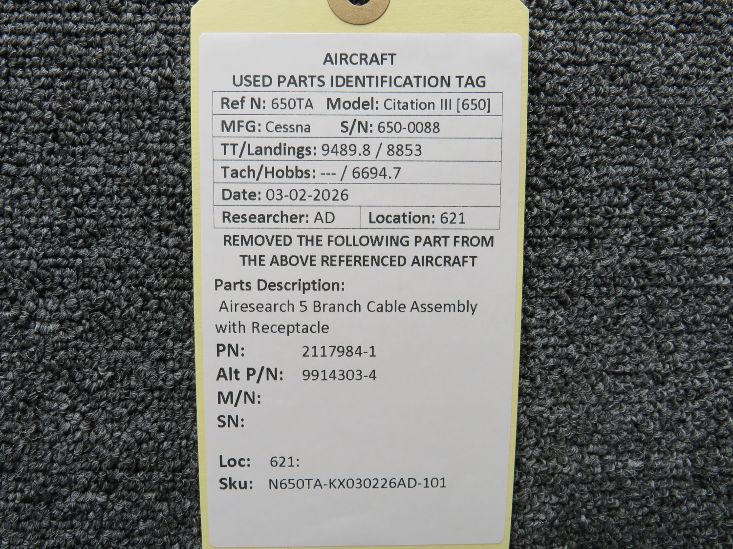 Every part is carefully inspected throughout our process and several times before it goes online. Most items are sold as-removed, just as they came off the aircraft. These parts are not functionally tested. What we do provide is clear photos, full traceability when available, pricing that reflects the as-removed condition, and a no-nonsense 90-day return window.