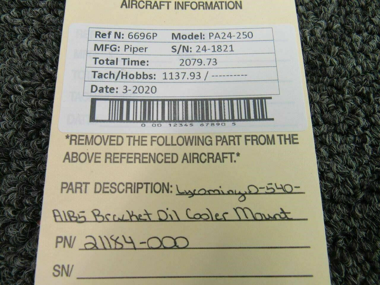 21184-000 Piper PA24-250 Lycoming O-540-A1B5 Bracket Oil Cooler Mount
