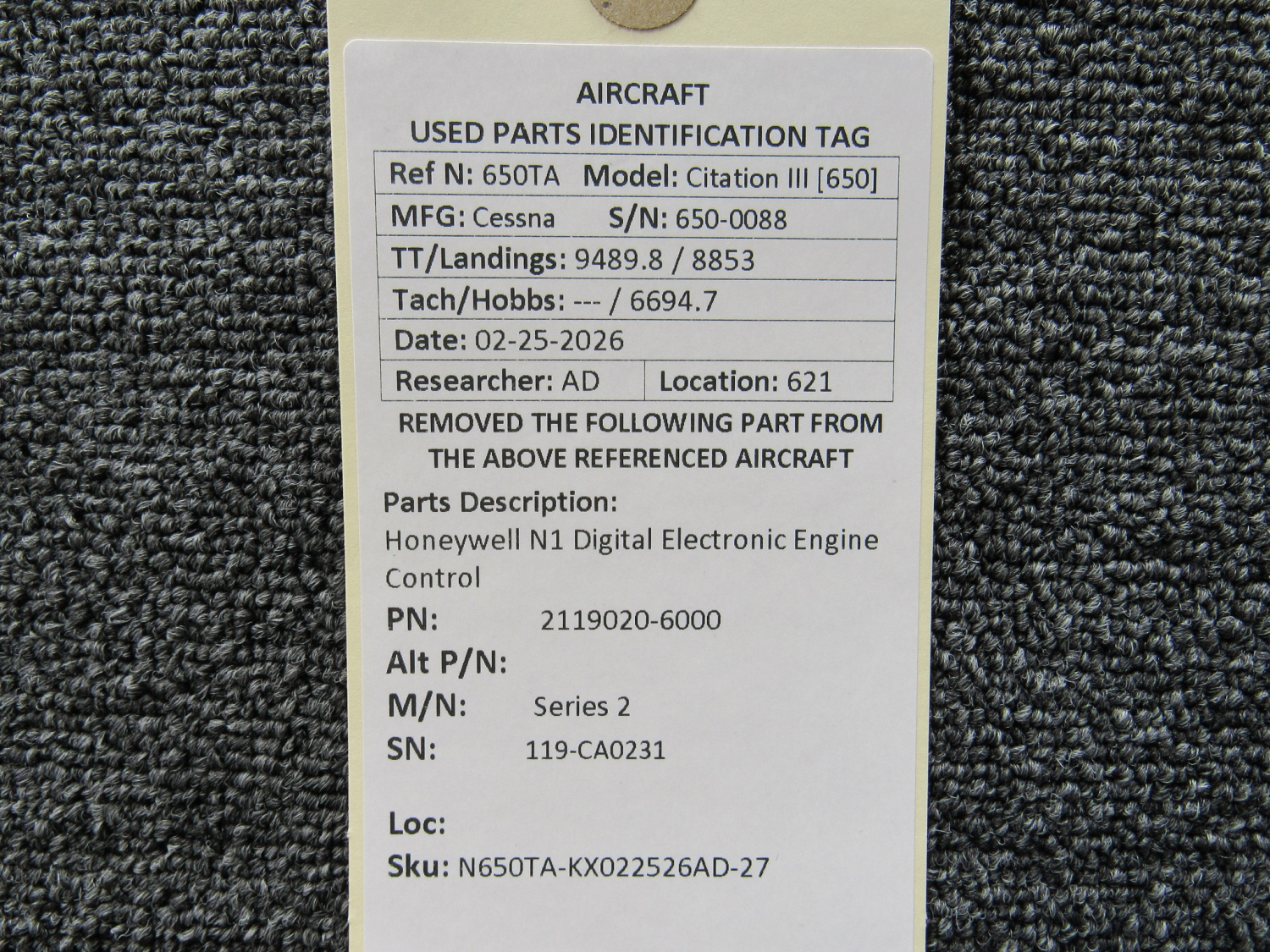 Every part is carefully inspected throughout our process and several times before it goes online. Most items are sold as-removed, just as they came off the aircraft. These parts are not functionally tested. What we do provide is clear photos, full traceability when available, pricing that reflects the as-removed condition, and a no-nonsense 90-day return window.