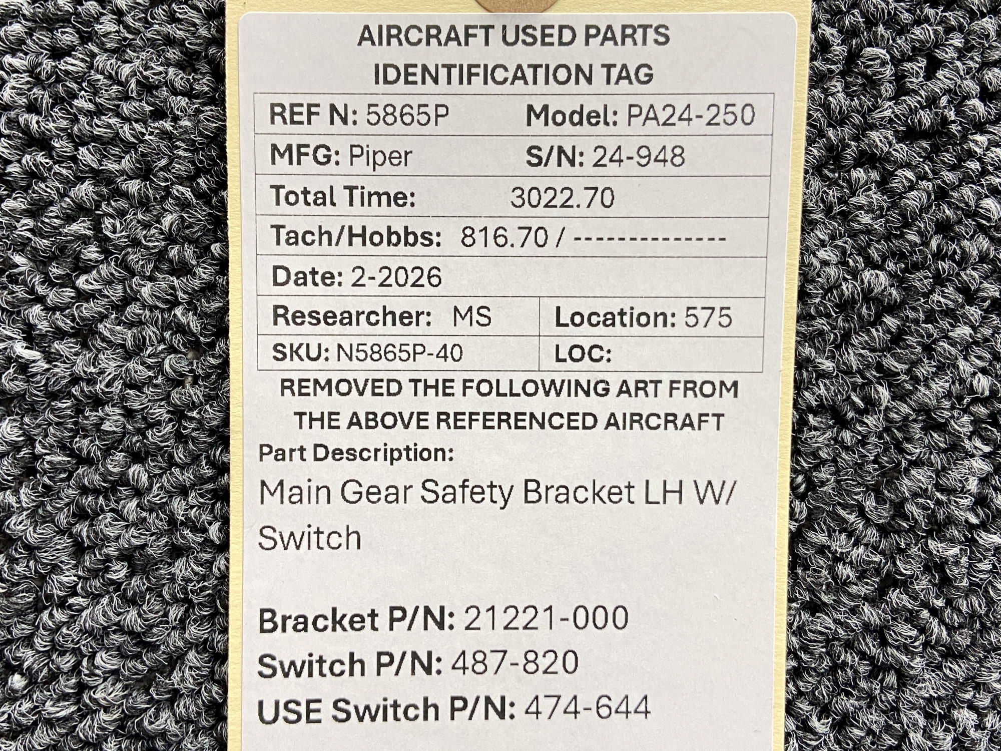 Unless specifically noted, most of our used airplane parts are sold in the condition they were removed, which means you should expect the usual signs of wear and tear.