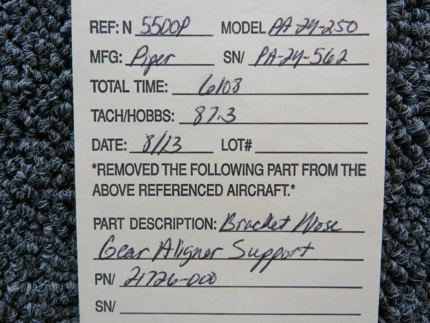 21726-000 Piper PA24-250 Nose Gear Aligner Support Bracket