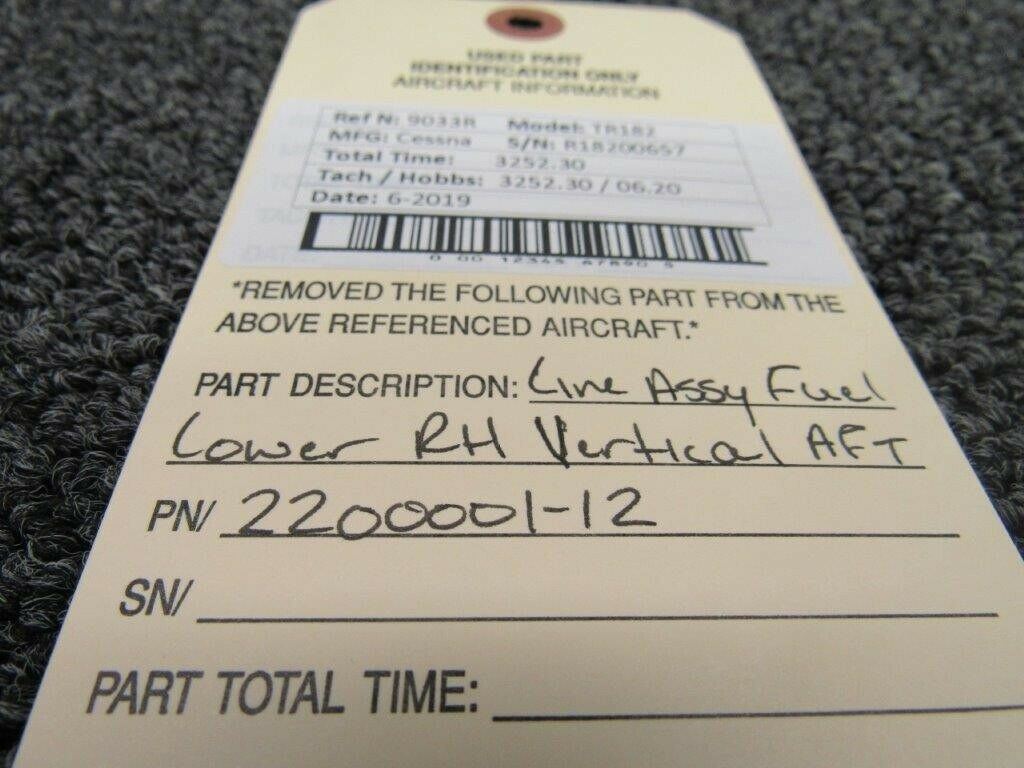 2200001-12 Cessna TR182 Line Assembly Fuel Lower RH Vertical AFT