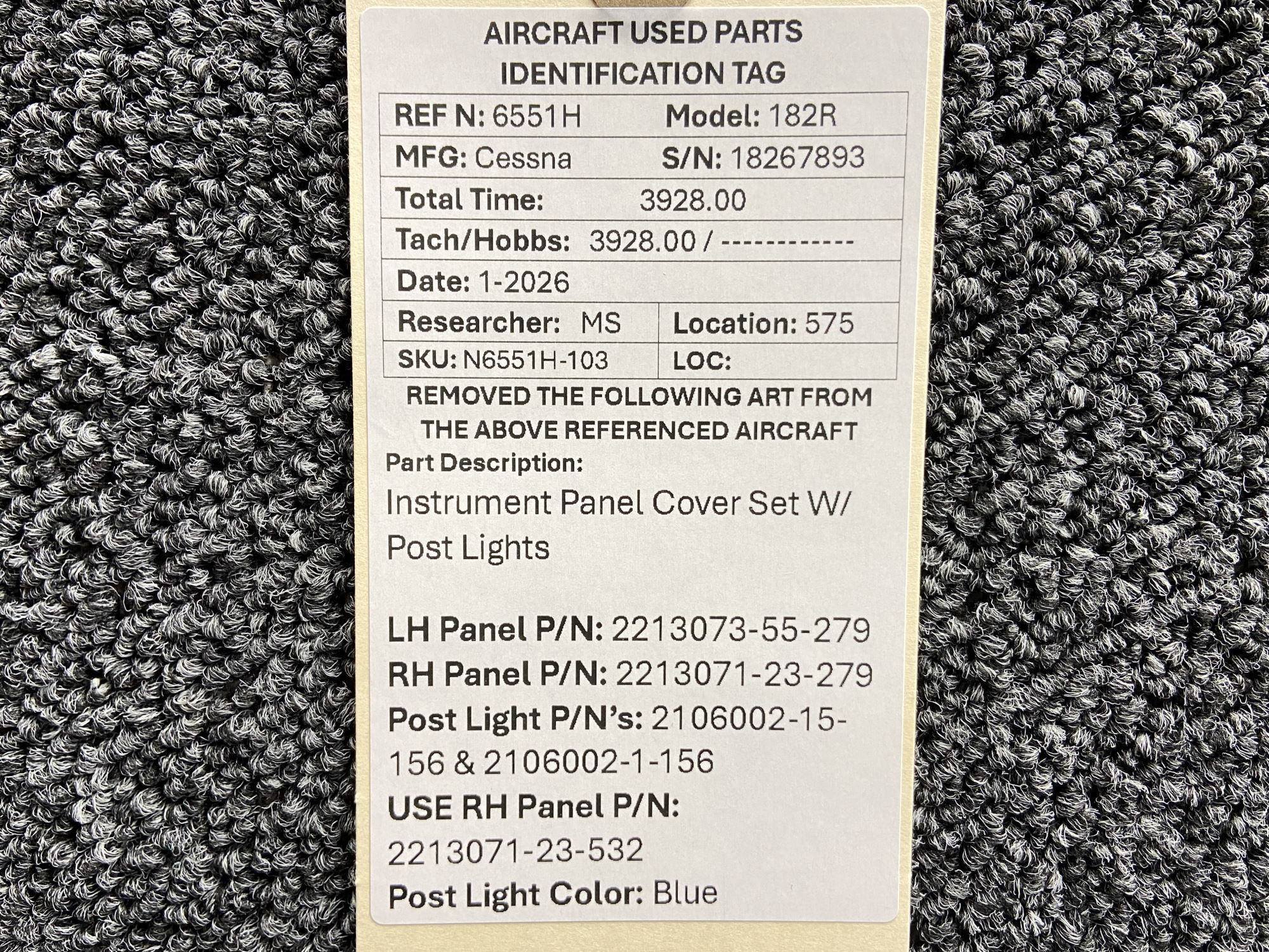 Unless specifically noted, most of our used airplane parts are sold in the condition they were removed, which means you should expect the usual signs of wear and tear.