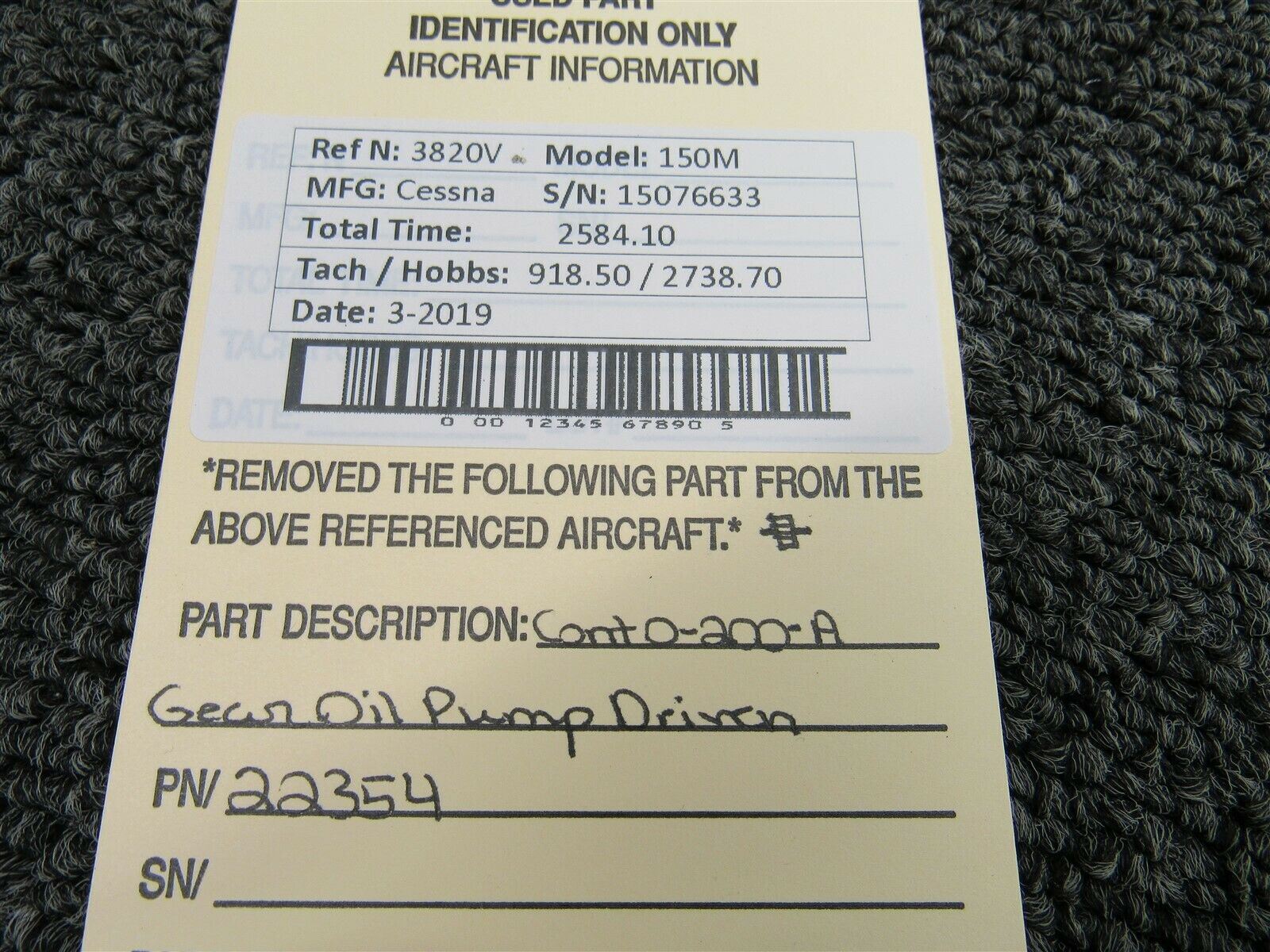 22354 Cessna 150M Continental O-200-A Oil Pump Driven Gear