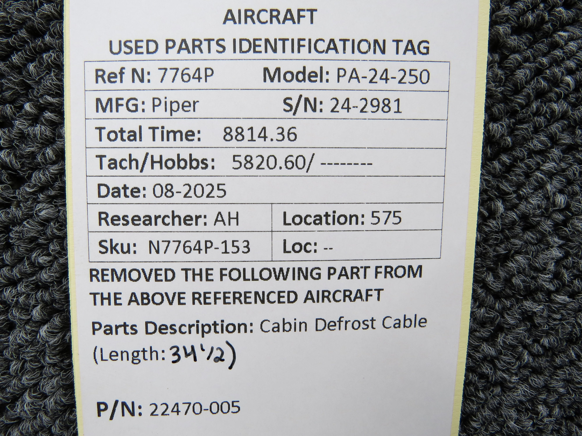 Unless specifically noted, most of our used airplane parts are sold in the condition they were removed, which means you should expect the usual signs of wear and tear.