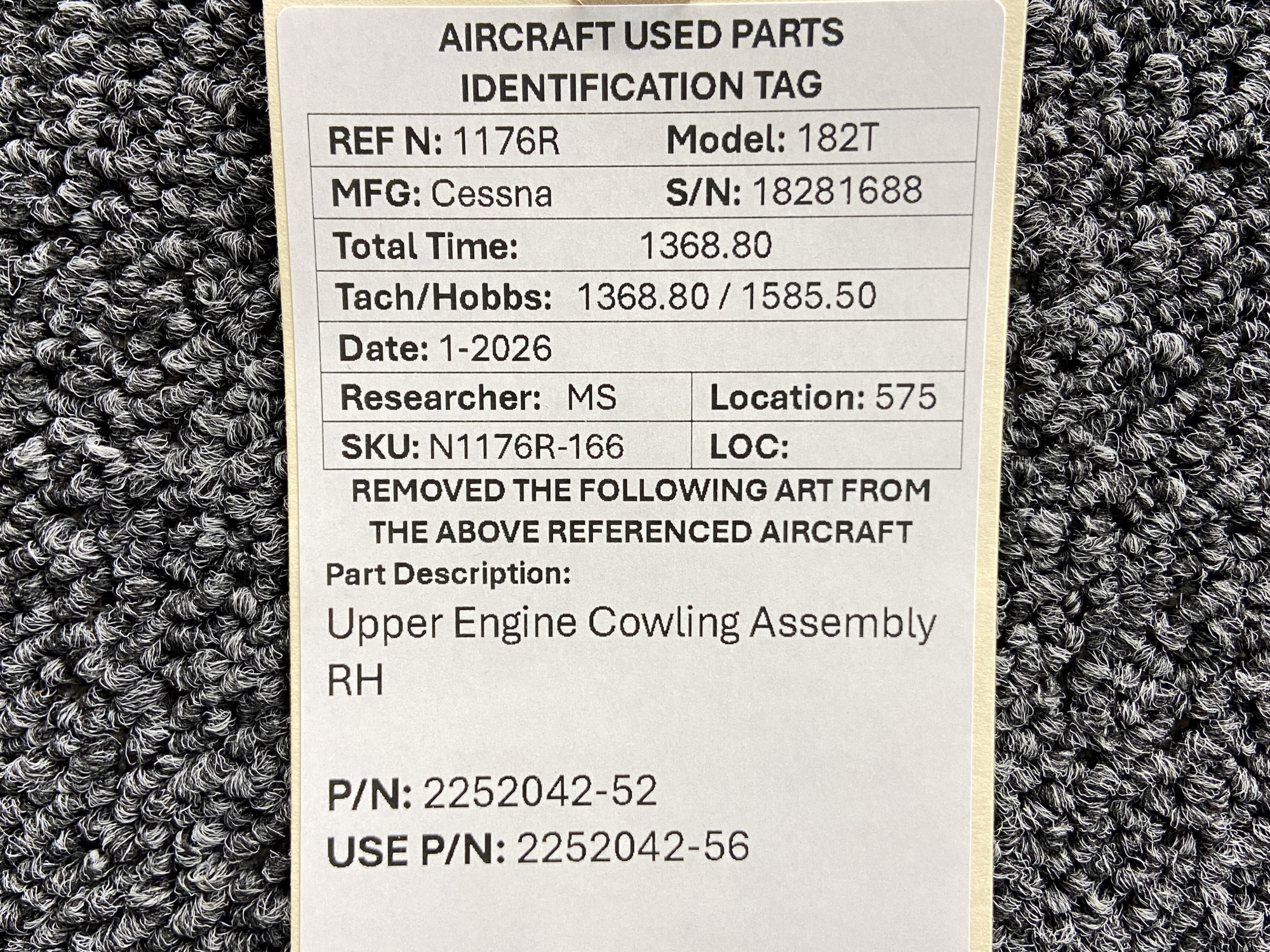 Unless specifically noted, most of our used airplane parts are sold in the condition they were removed, which means you should expect the usual signs of wear and tear.