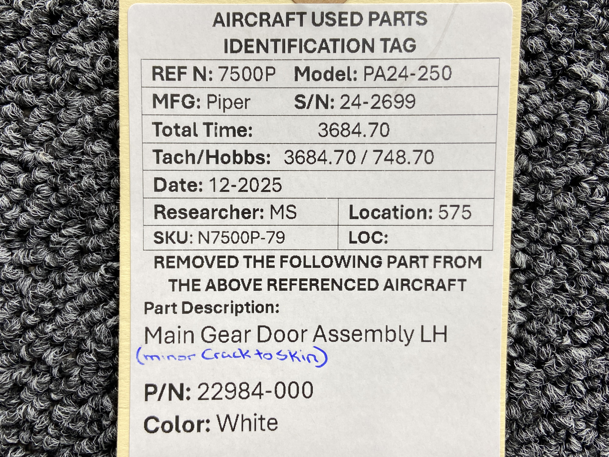 Unless specifically noted, most of our used airplane parts are sold in the condition they were removed, which means you should expect the usual signs of wear and tear.
