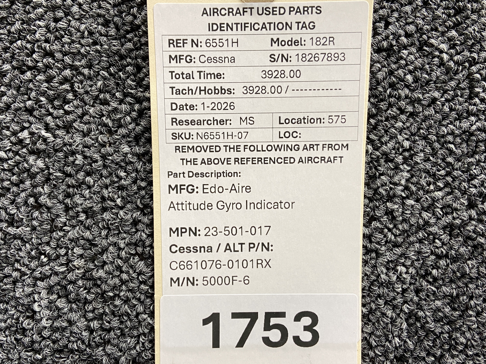 Unless specifically noted, most of our used airplane parts are sold in the condition they were removed, which means you should expect the usual signs of wear and tear.