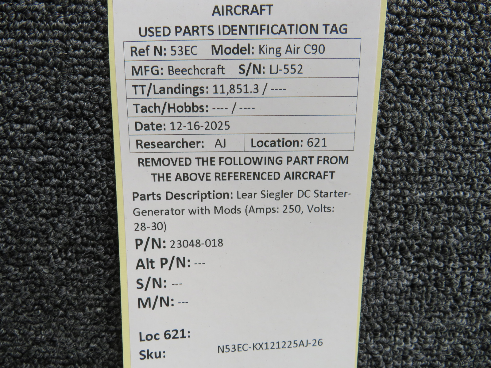 Unless specifically noted, most of our used airplane parts are sold in the condition they were removed, which means you should expect the usual signs of wear and tear.