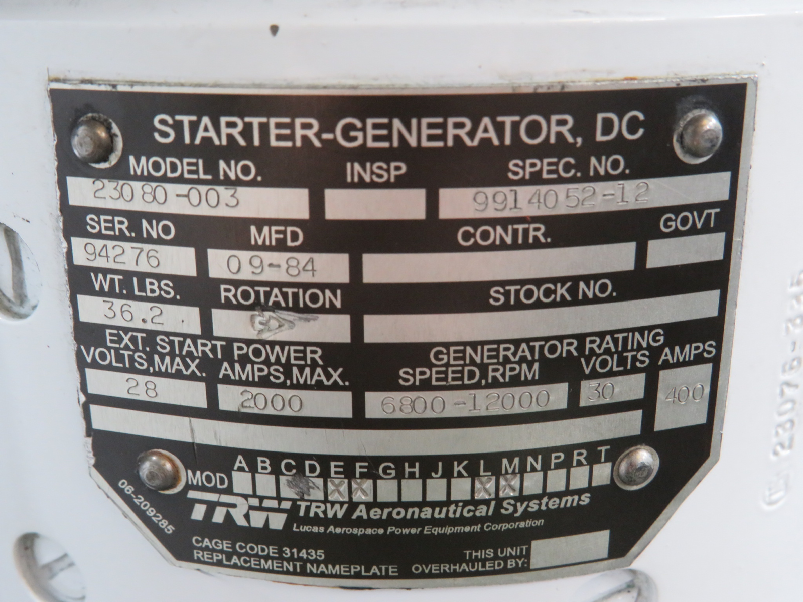 - Manufacturer Date: 09/84