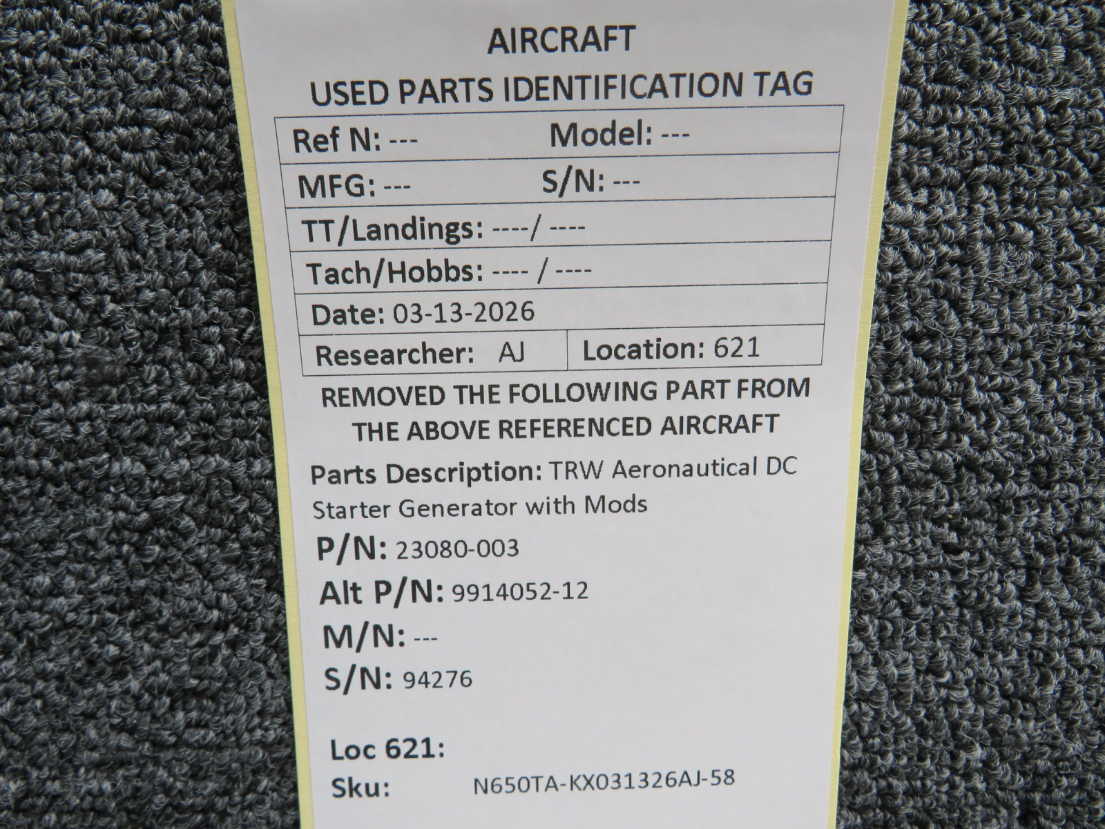 Every part is carefully inspected throughout our process and several times before it goes online. Most items are sold as-removed, just as they came off the aircraft. These parts are not functionally tested. What we do provide is clear photos, full traceability when available, pricing that reflects the as-removed condition, and a no-nonsense 90-day return window.