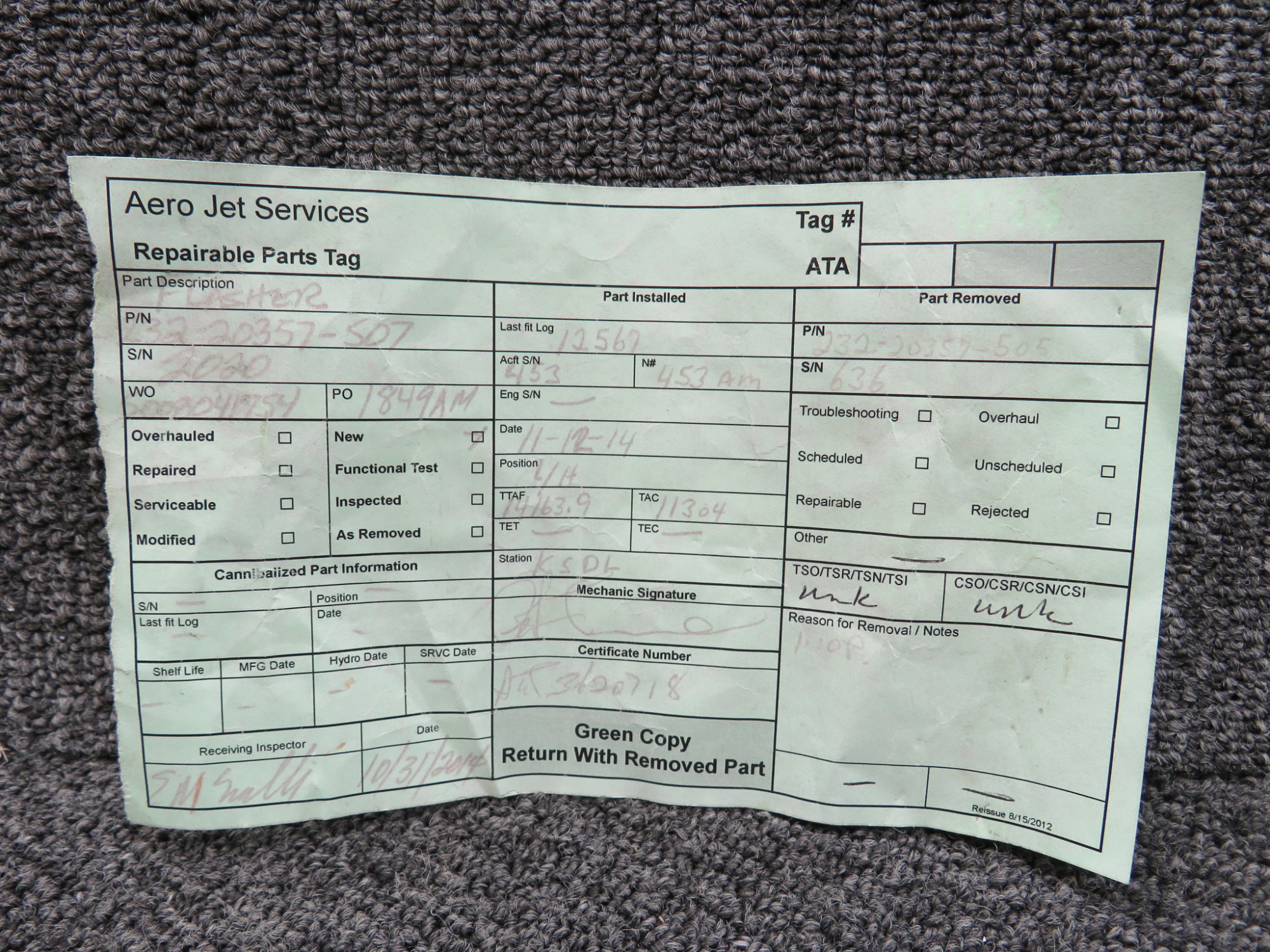 Every part is carefully inspected throughout our process and several times before it goes online. Most items are sold as-removed, just as they came off the aircraft. These parts are not functionally tested. What we do provide is clear photos, full traceability when available, pricing that reflects the as-removed condition, and a no-nonsense 90-day return window.