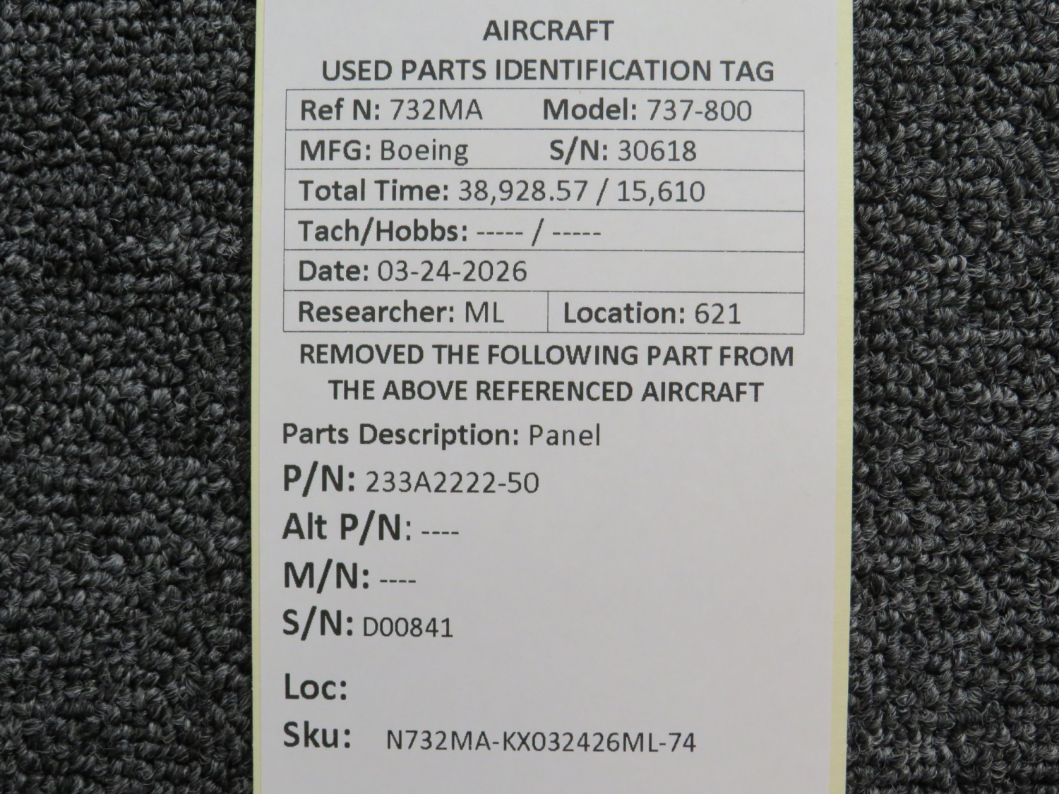 Every part is carefully inspected throughout our process and several times before it goes online. Most items are sold as-removed, just as they came off the aircraft. These parts are not functionally tested. What we do provide is clear photos, full traceability when available, pricing that reflects the as-removed condition, and a no-nonsense 90-day return window.