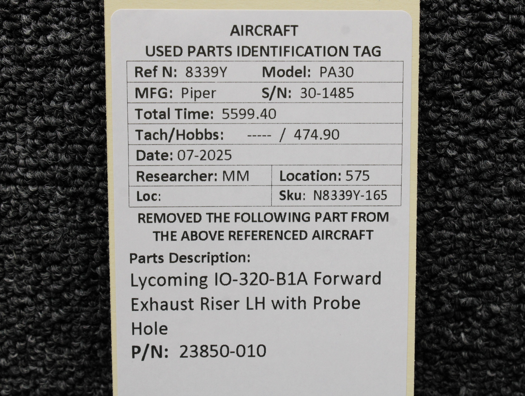 - Removed From: Lycoming IO-320-B1A