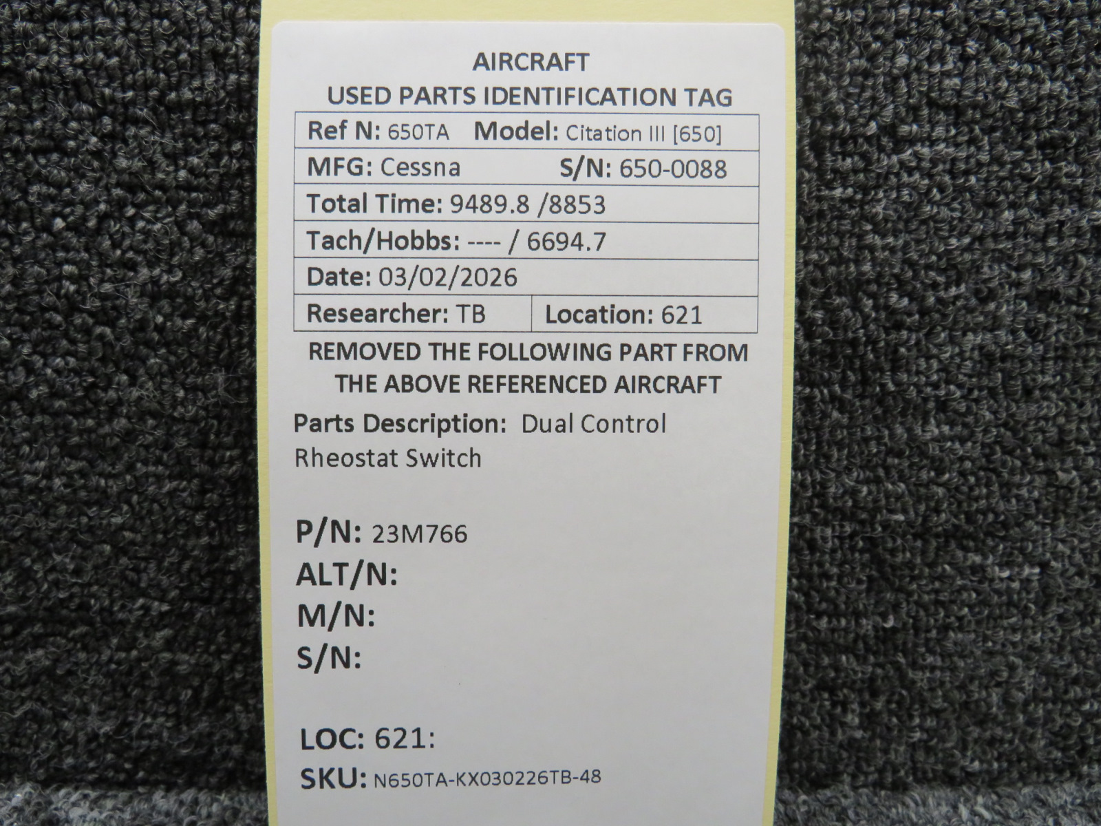 Every part is carefully inspected throughout our process and several times before it goes online. Most items are sold as-removed, just as they came off the aircraft. These parts are not functionally tested. What we do provide is clear photos, full traceability when available, pricing that reflects the as-removed condition, and a no-nonsense 90-day return window.