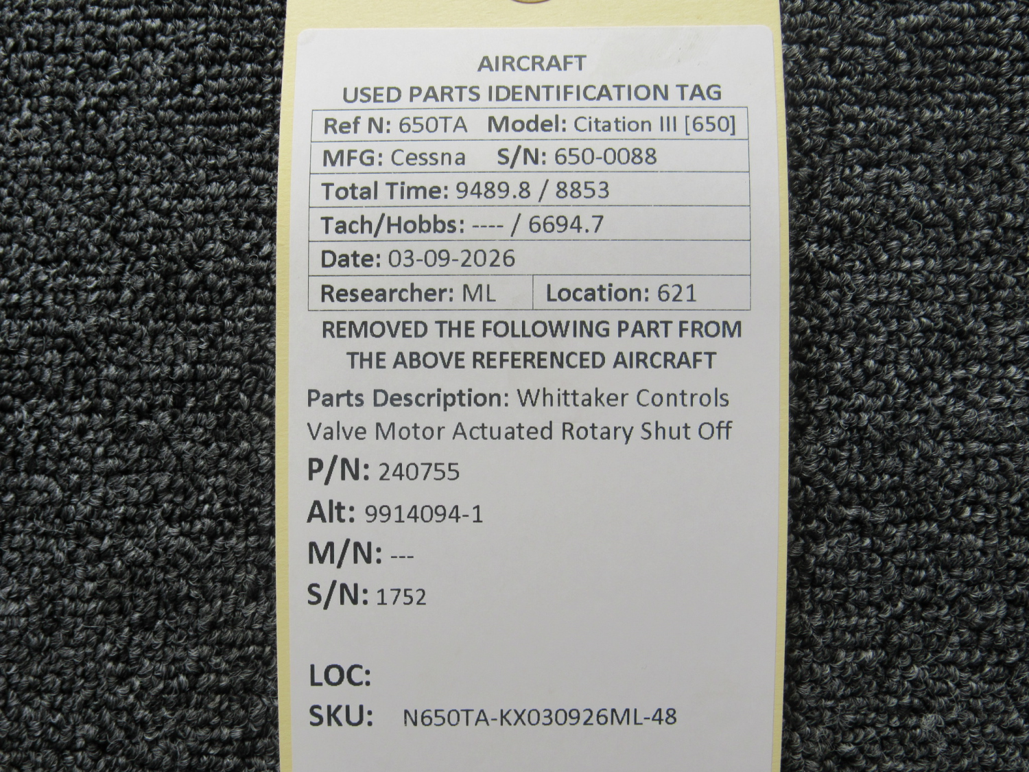 Every part is carefully inspected throughout our process and several times before it goes online. Most items are sold as-removed, just as they came off the aircraft. These parts are not functionally tested. What we do provide is clear photos, full traceability when available, pricing that reflects the as-removed condition, and a no-nonsense 90-day return window.