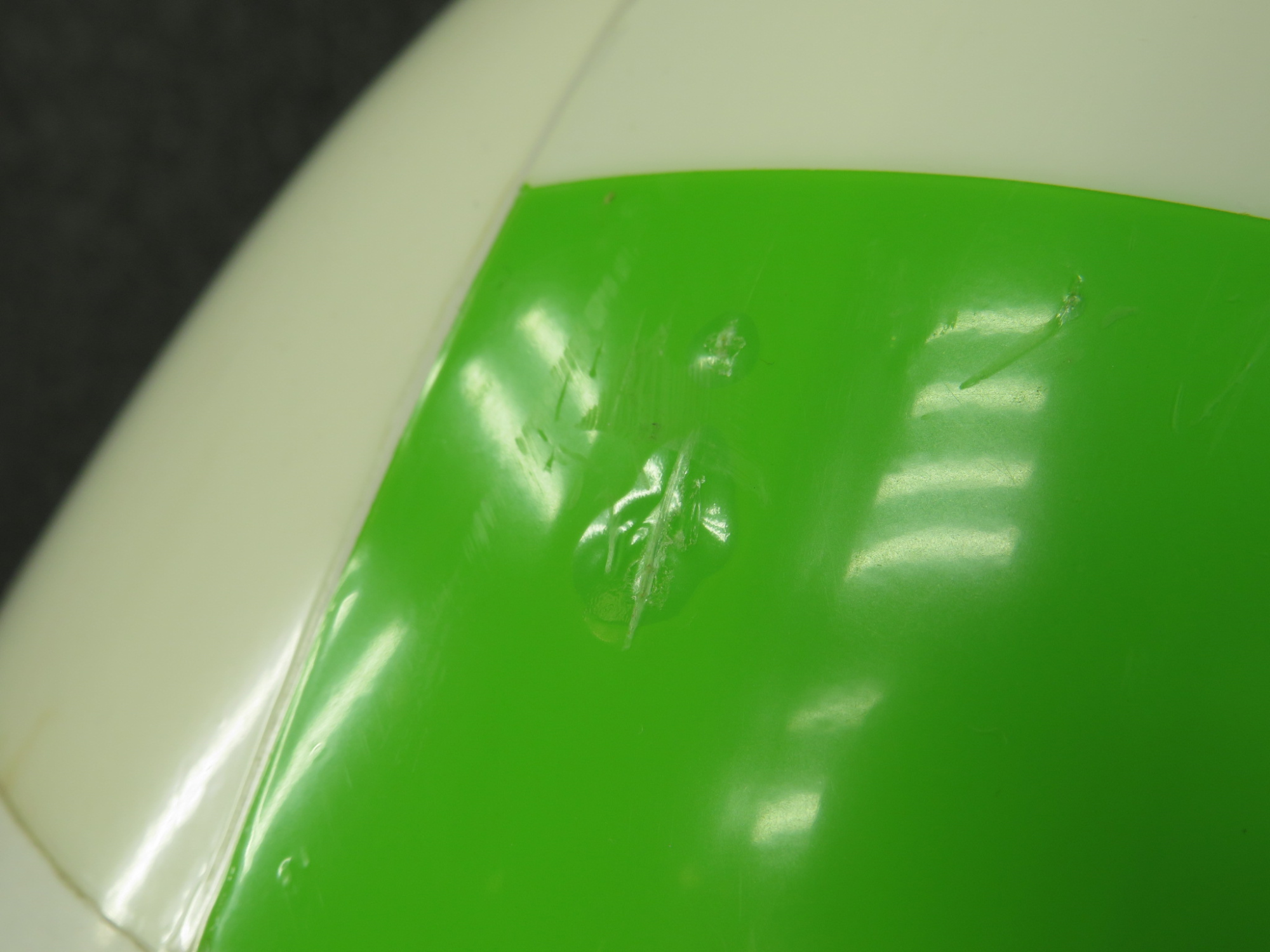 - Small gash on green stripe.