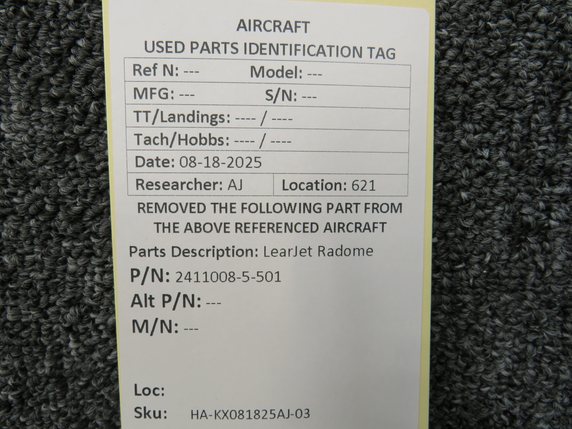 Unless specifically noted, most of our used airplane parts are sold in the condition they were removed, which means you should expect the usual signs of wear and tear.