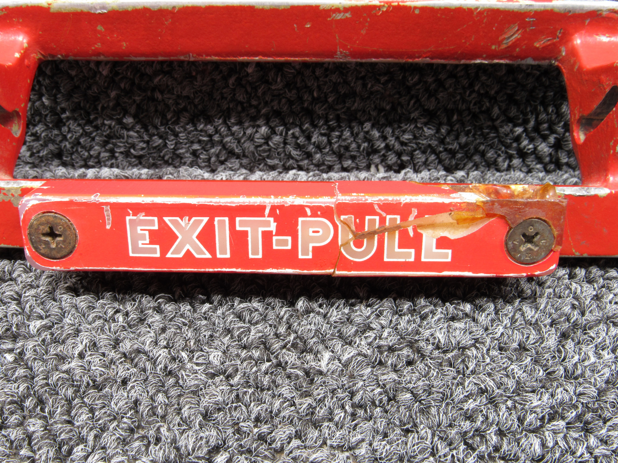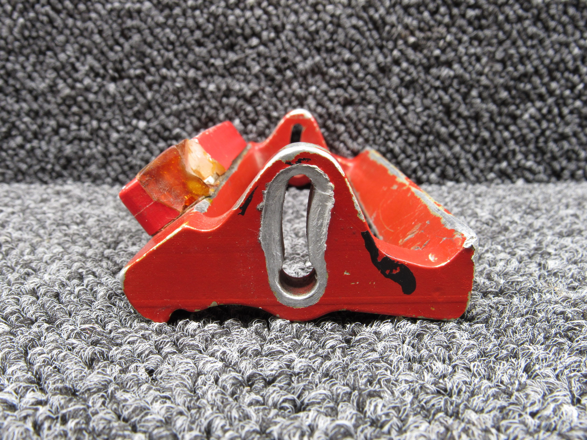 - Faded paint, cracked plastic on the handle