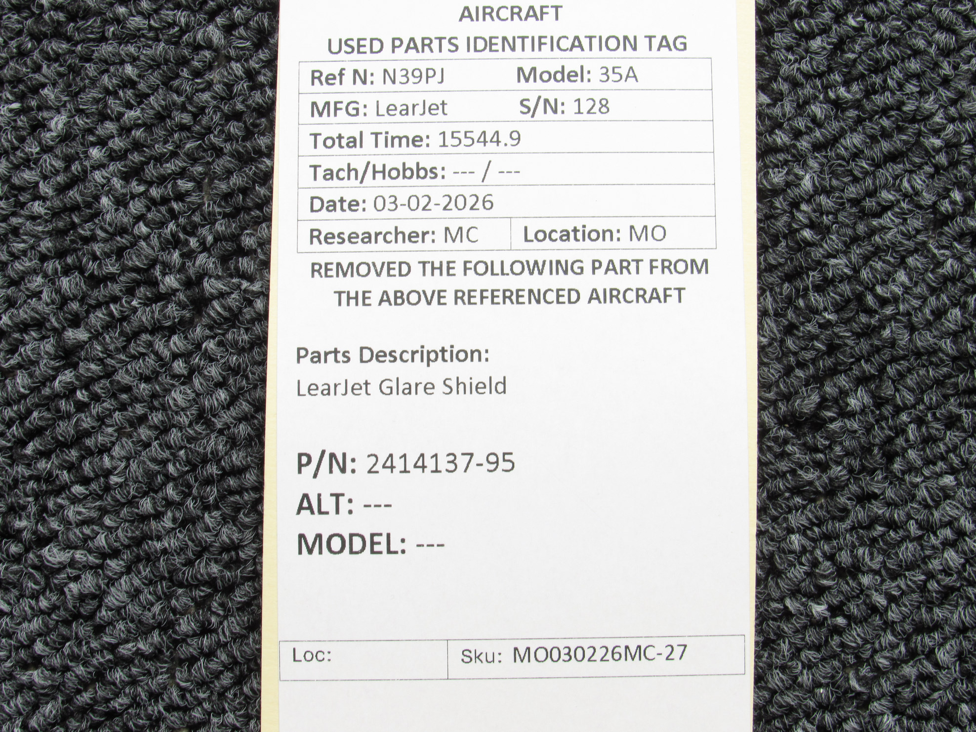 Every part is carefully inspected throughout our process and several times before it goes online. Most items are sold as-removed, just as they came off the aircraft. These parts are not functionally tested. What we do provide is clear photos, full traceability when available, pricing that reflects the as-removed condition, and a no-nonsense 90-day return window.