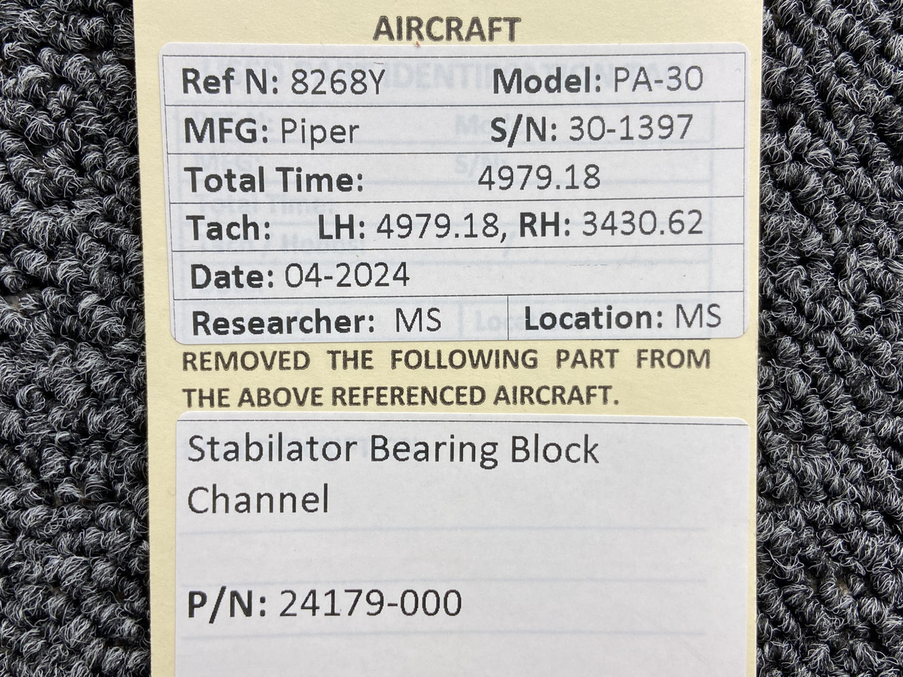 Unless specifically noted, most of our used airplane parts are sold in the condition they were removed, which means you should expect the usual signs of wear and tear.