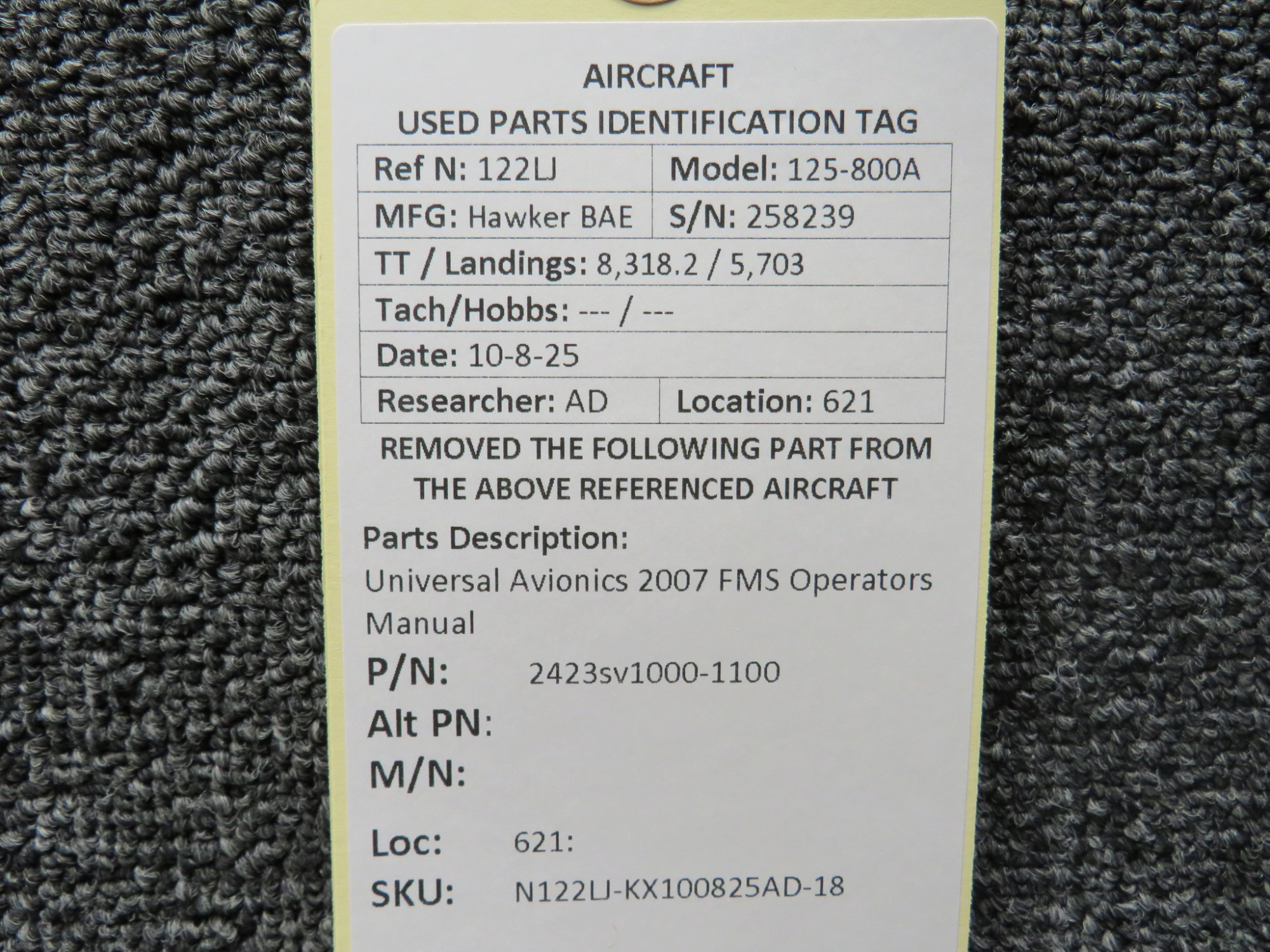 Every part is carefully inspected throughout our process and several times before it goes online. Most items are sold as-removed, just as they came off the aircraft. These parts are not functionally tested. What we do provide is clear photos, full traceability when available, pricing that reflects the as-removed condition, and a no-nonsense 90-day return window.