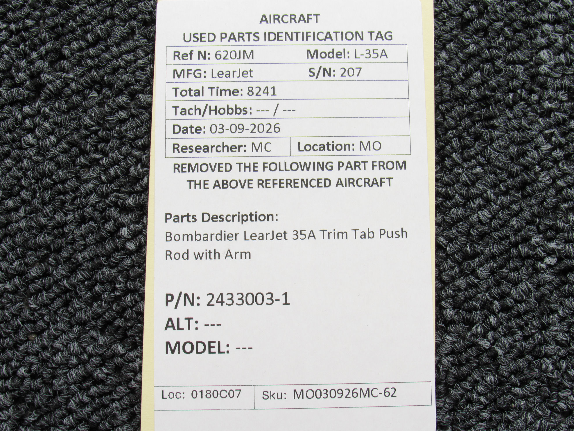 Every part is carefully inspected throughout our process and several times before it goes online. Most items are sold as-removed, just as they came off the aircraft. These parts are not functionally tested. What we do provide is clear photos, full traceability when available, pricing that reflects the as-removed condition, and a no-nonsense 90-day return window.