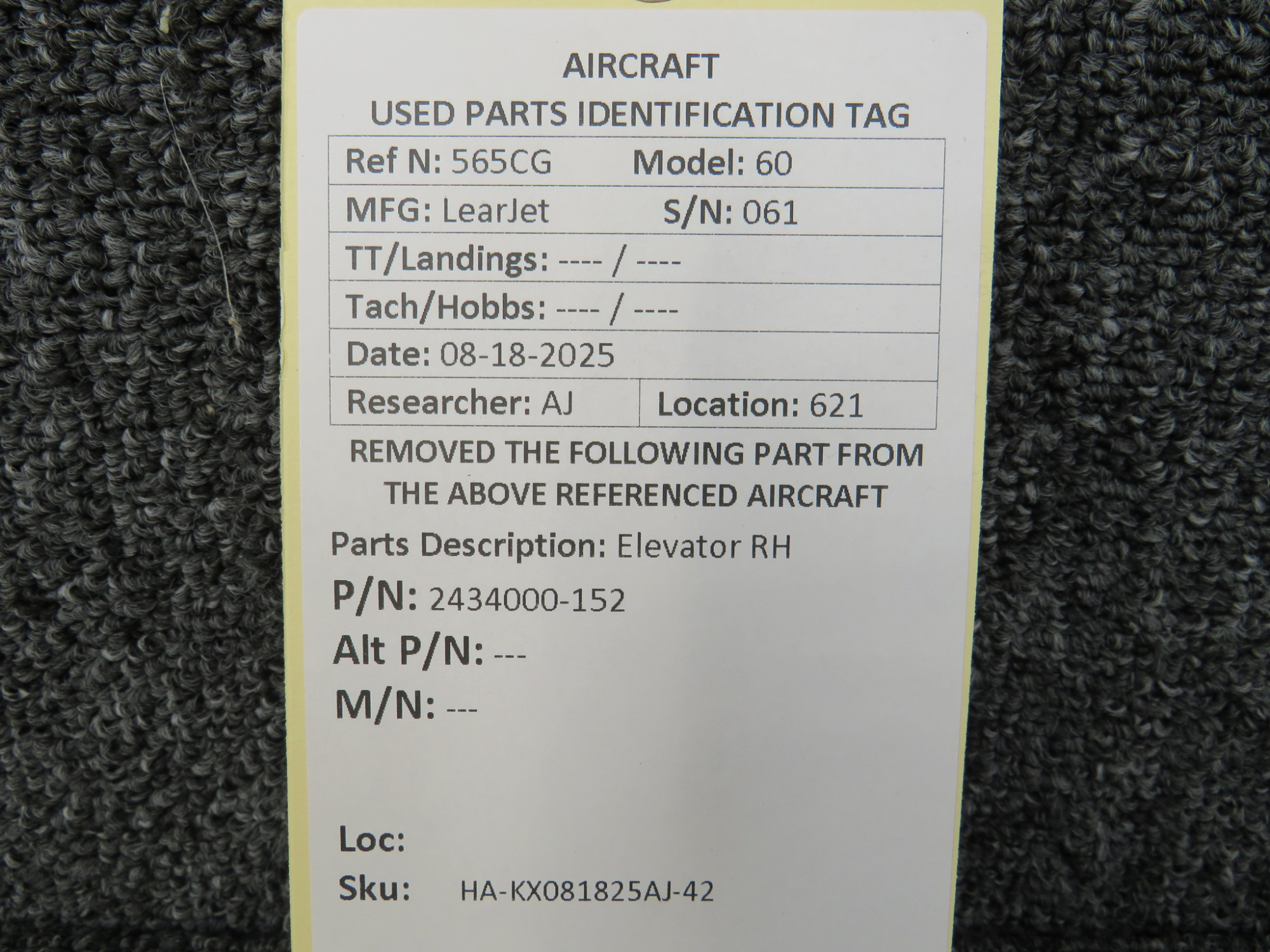 Unless specifically noted, most of our used airplane parts are sold in the condition they were removed, which means you should expect the usual signs of wear and tear.