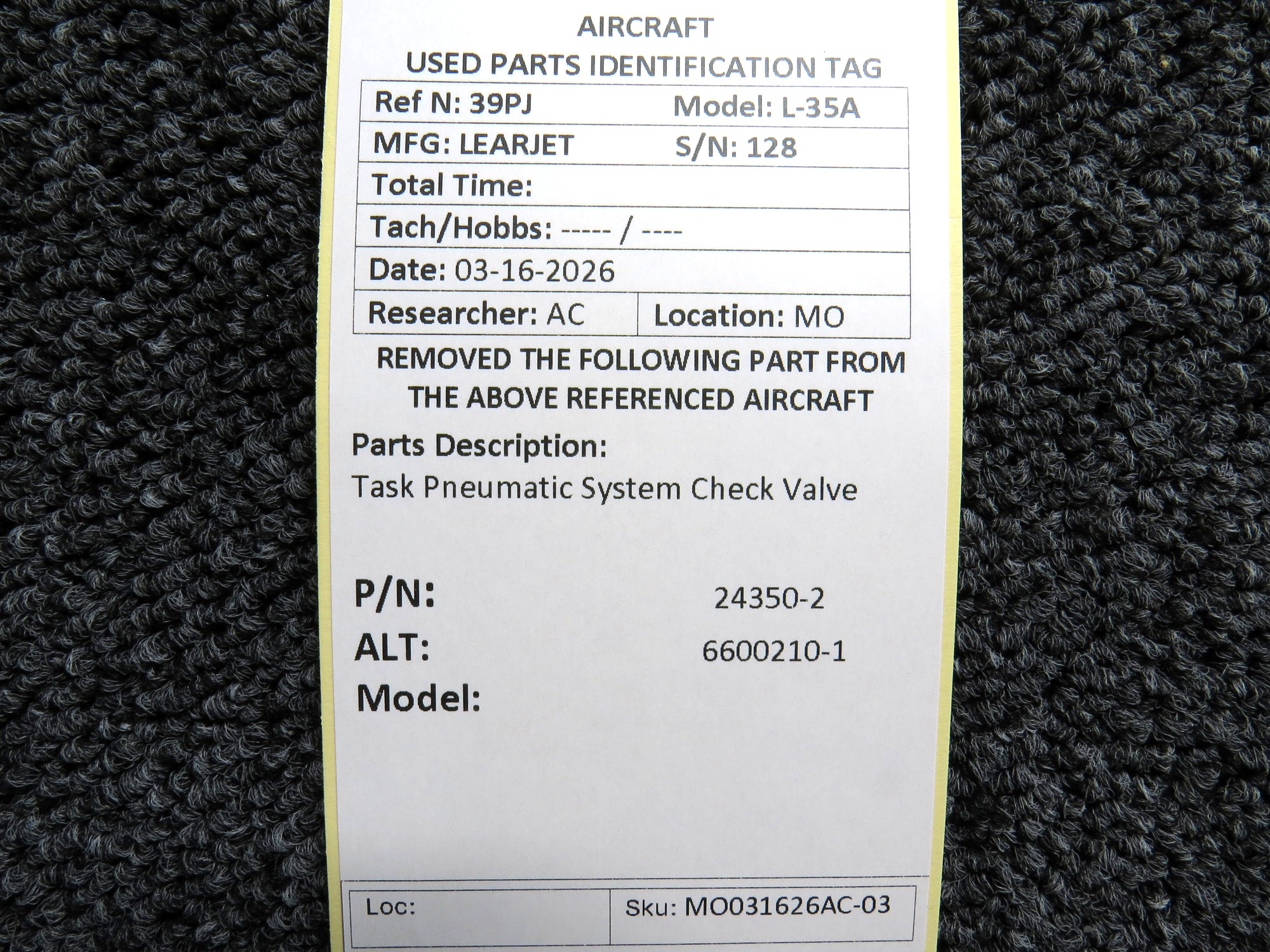Every part is carefully inspected throughout our process and several times before it goes online. Most items are sold as-removed, just as they came off the aircraft. These parts are not functionally tested. What we do provide is clear photos, full traceability when available, pricing that reflects the as-removed condition, and a no-nonsense 90-day return window.