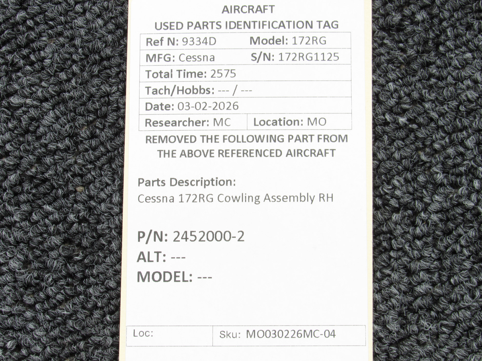 Every part is carefully inspected throughout our process and several times before it goes online. Most items are sold as-removed, just as they came off the aircraft. These parts are not functionally tested. What we do provide is clear photos, full traceability when available, pricing that reflects the as-removed condition, and a no-nonsense 90-day return window.